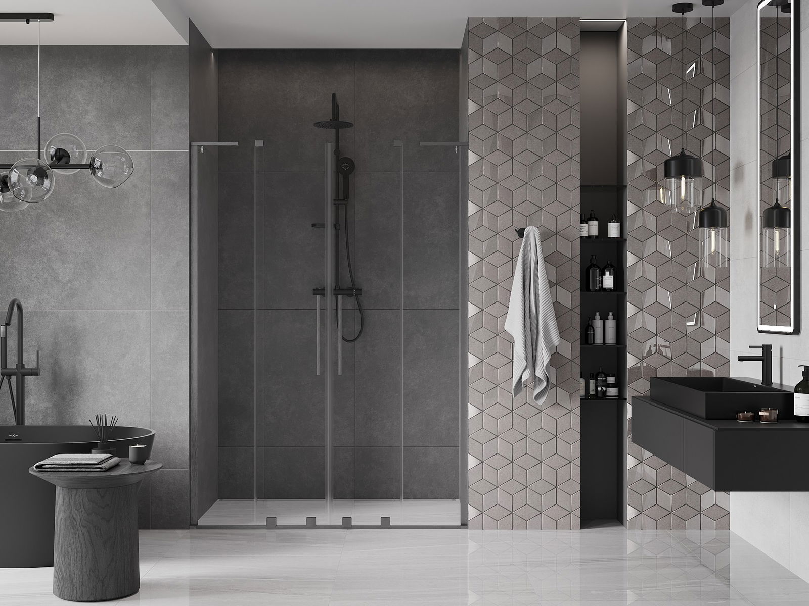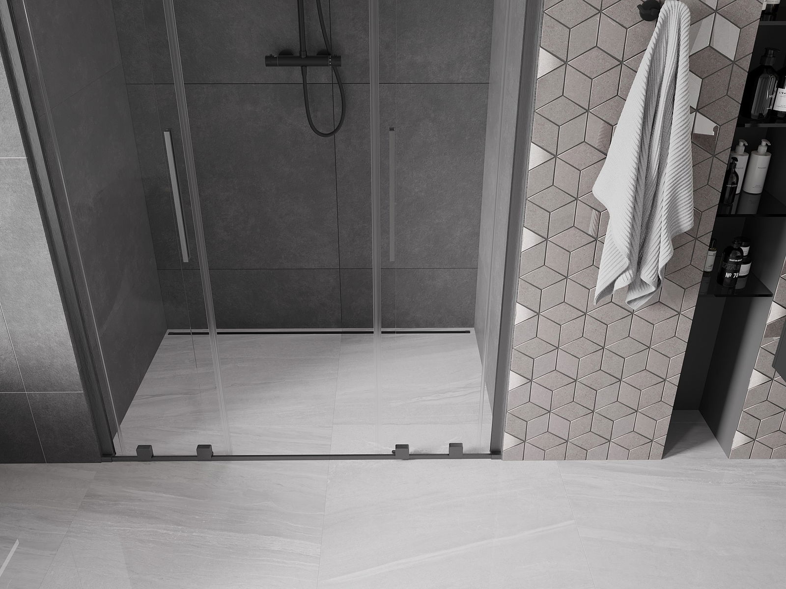 Ērts un parocīgs rokturis ir izgatavots no nerūsējoša tērauda. Modernā forma apvienojumā ar apdari, kas saskaņota ar profilu krāsu, piešķir kopējo modernu un stilīgu izskatu, izceļot katras vannas istabas estētiku.