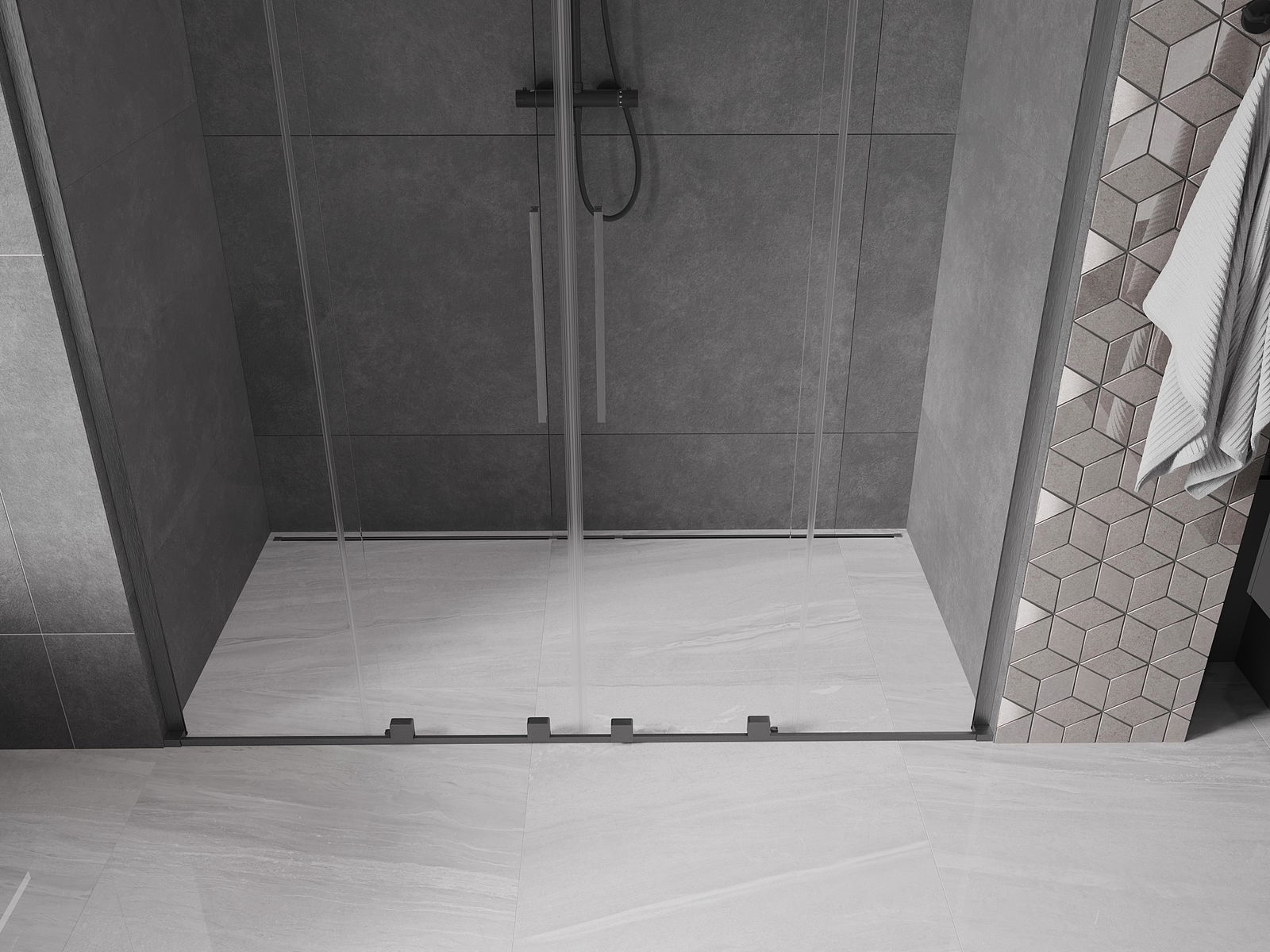 Mexen Velar L Duo bīdāmās dušas durvis 180 cm, caurspīdīgas, nošūts pistoles pelēkā krāsā - 871-180-003-02-66