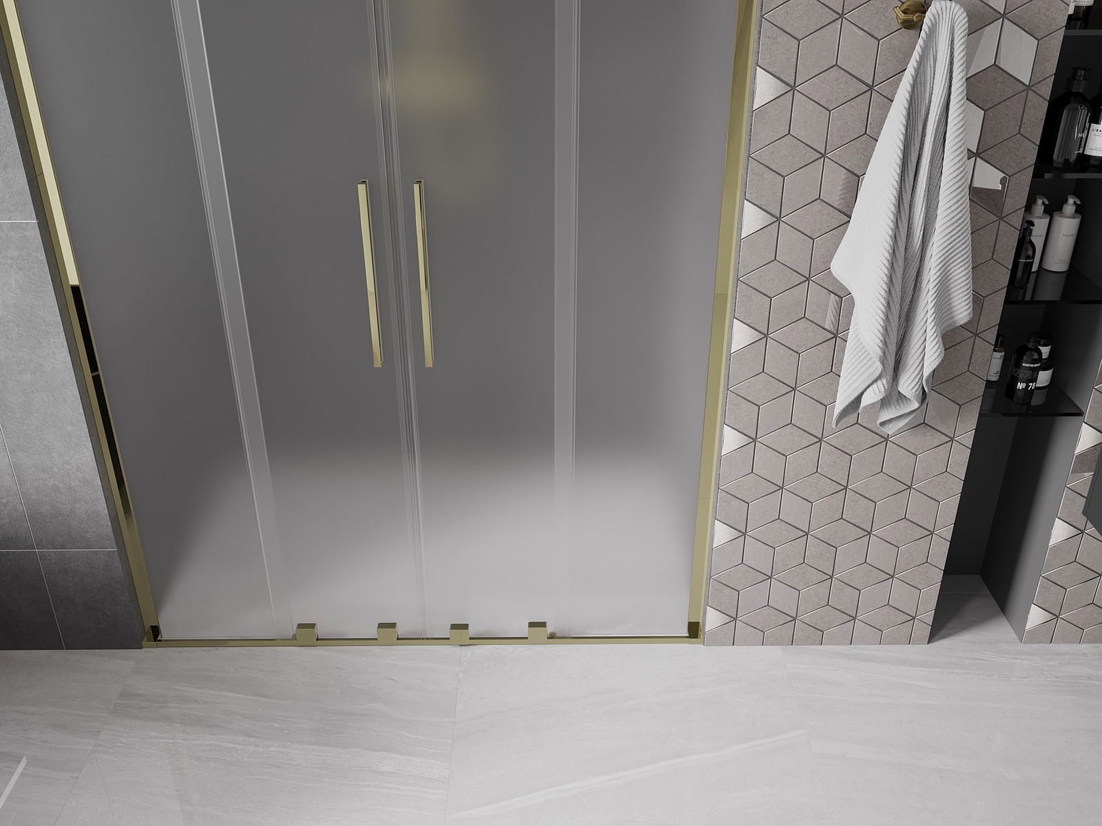 Mexen Velar L Duo bīdāmās dušas durvis 160 cm, matētas, zeltainas - 871-160-003-32-50