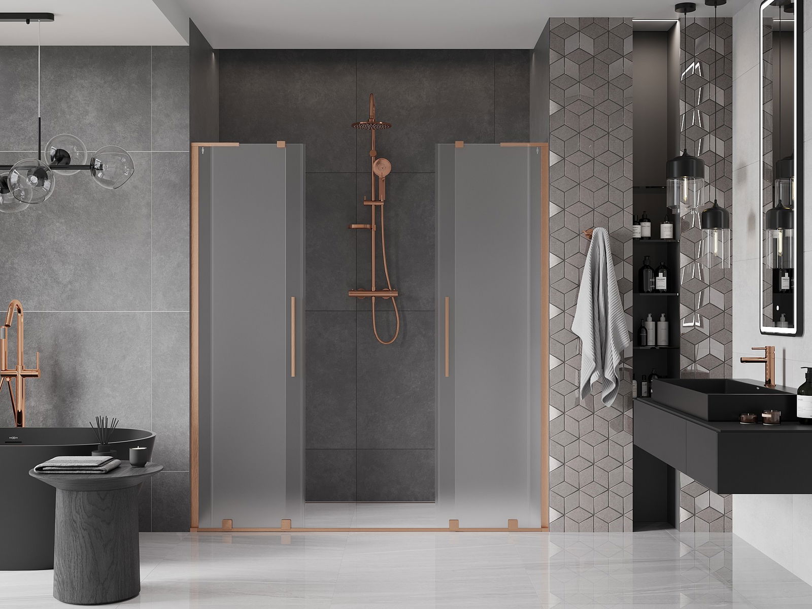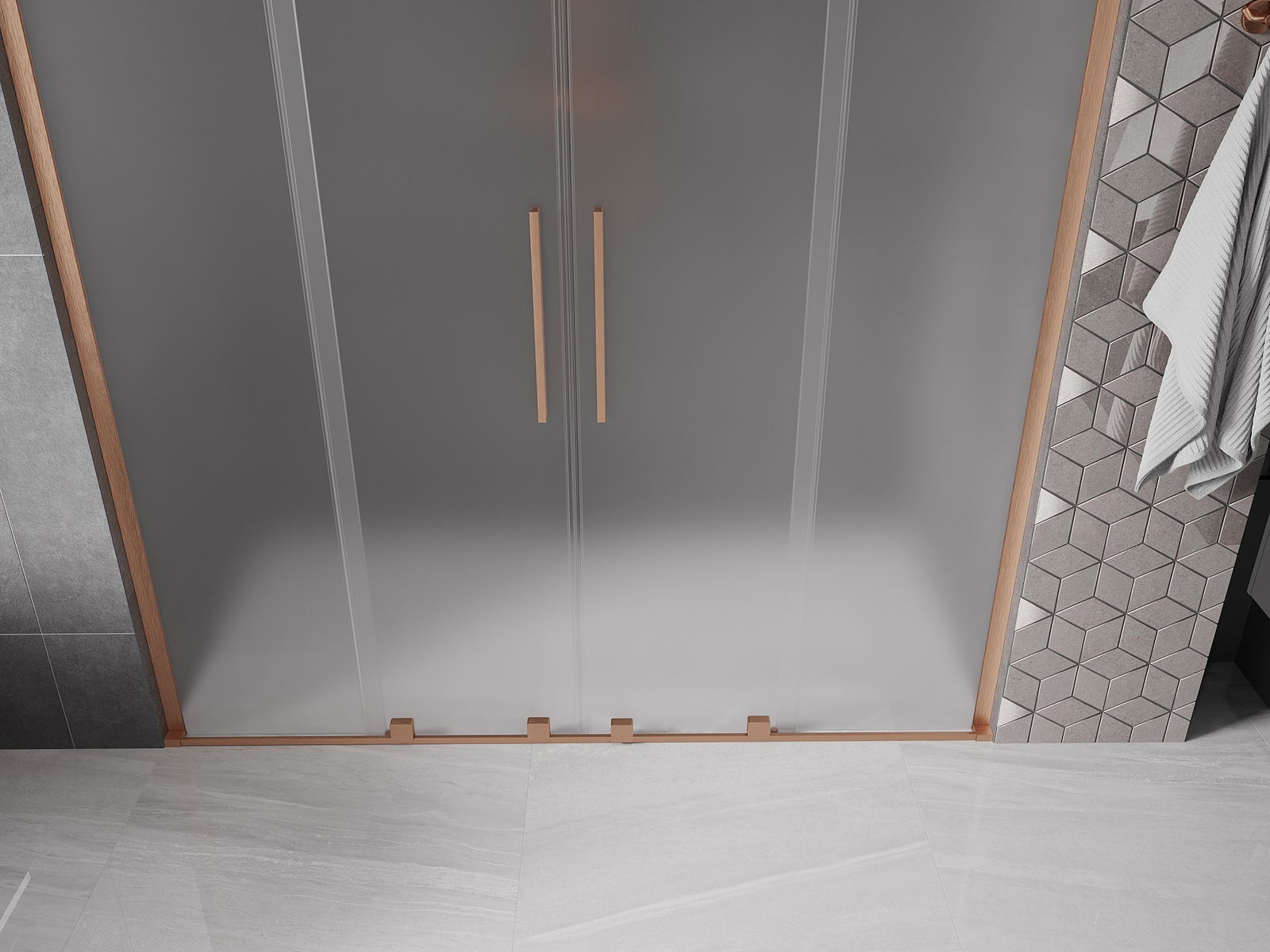 Mexen Velar L Duo bīdāmās dušas durvis 200 cm, matēts, pulēts varš - 871-200-003-32-65