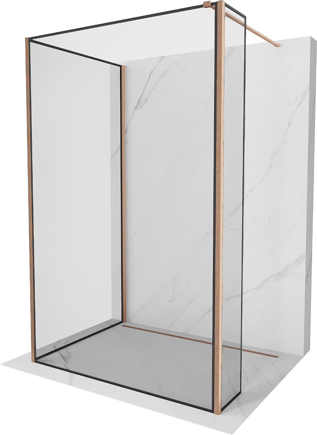 Mexen Kioto dušas siena Walk-in 110 x 80 x 30 cm, melns rāmis, matēts varš - 800-110-080-221-65-70-030