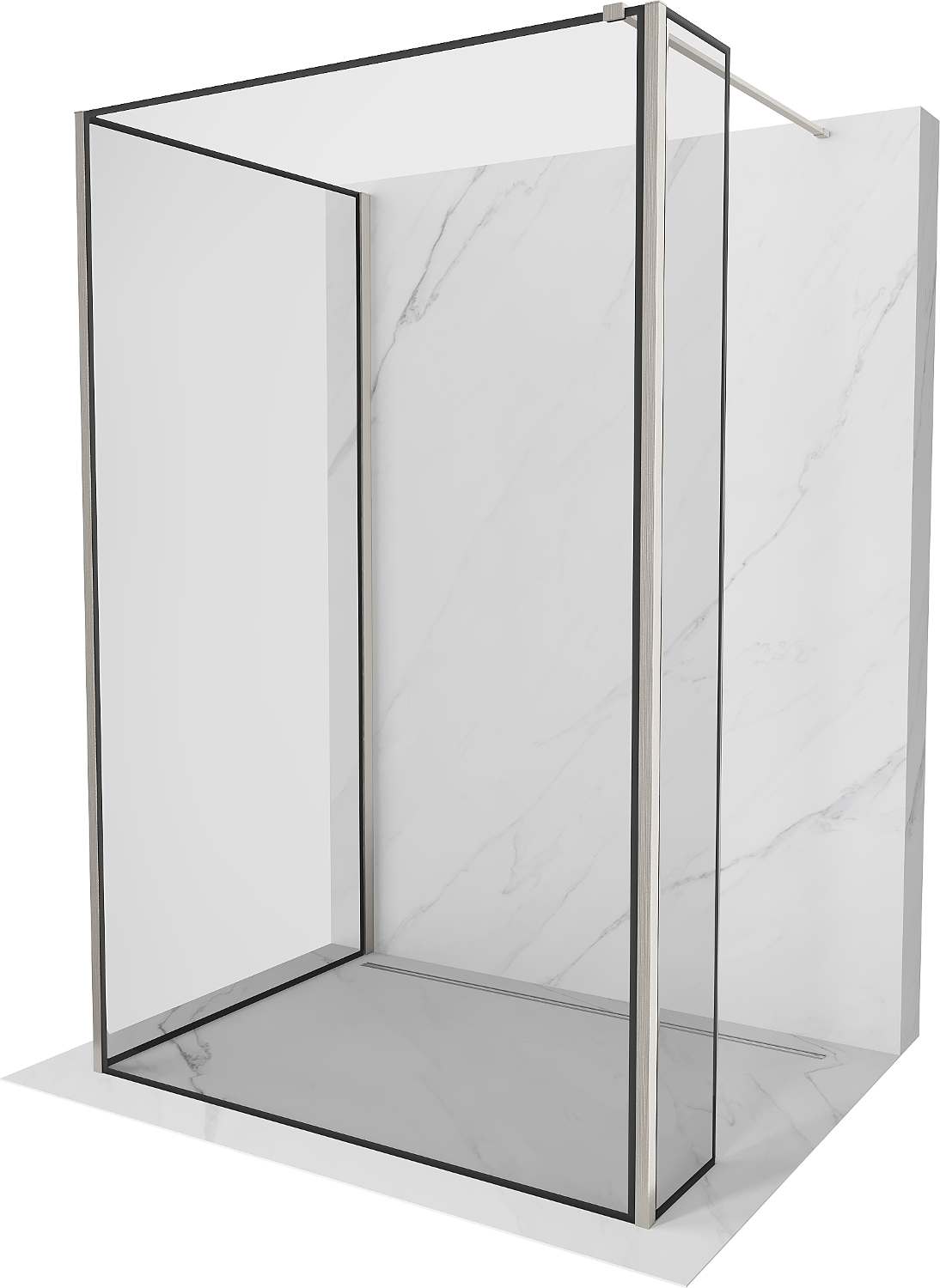 Mexen Kioto dušas siena Walk-in 130 x 70 x 30 cm, melns rāmis, matēts niķelis - 800-130-070-221-97-70-030