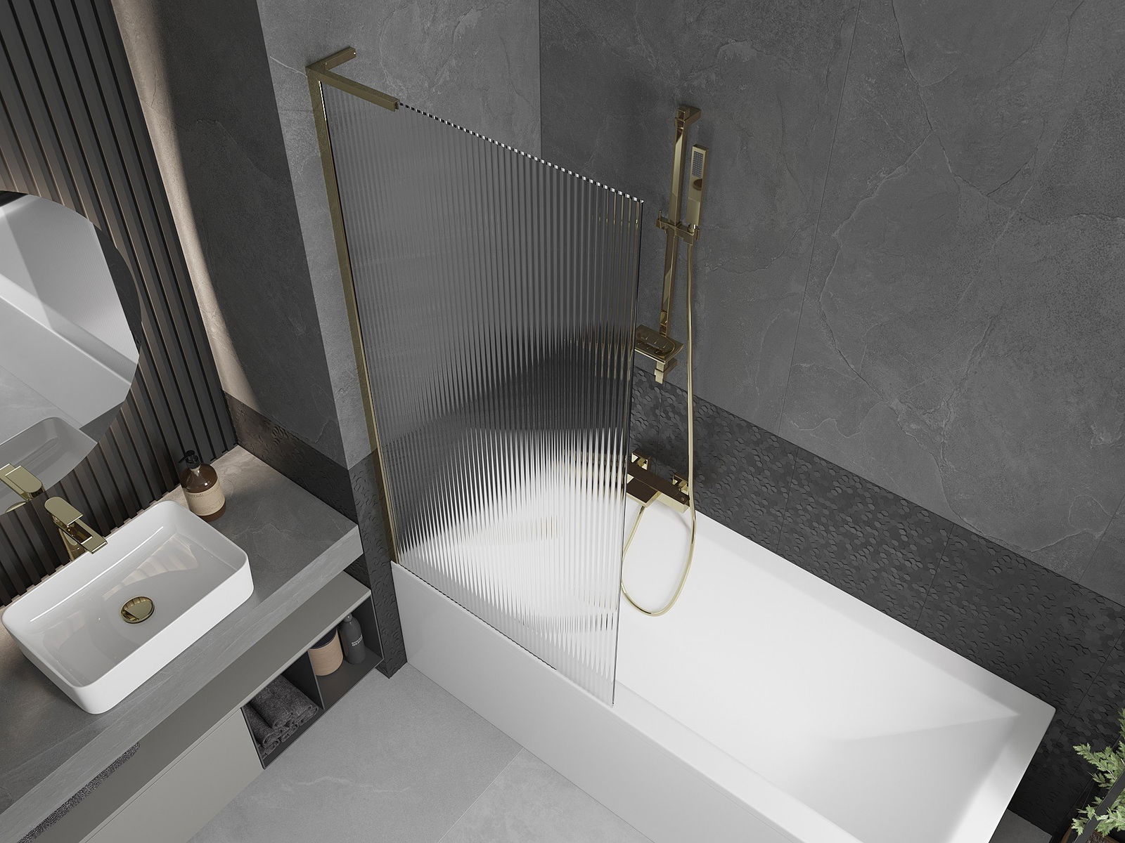 Mexen Next L 1-paneļa vannas ekrāns 80 x 150 cm, svītras, zelta - 895-080-000-03-09-50