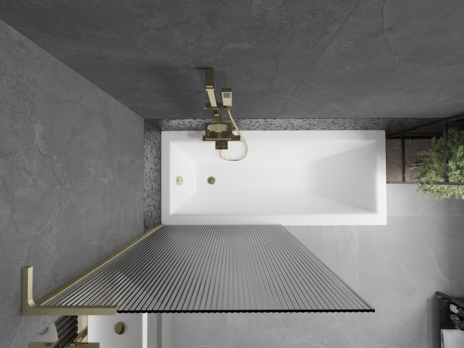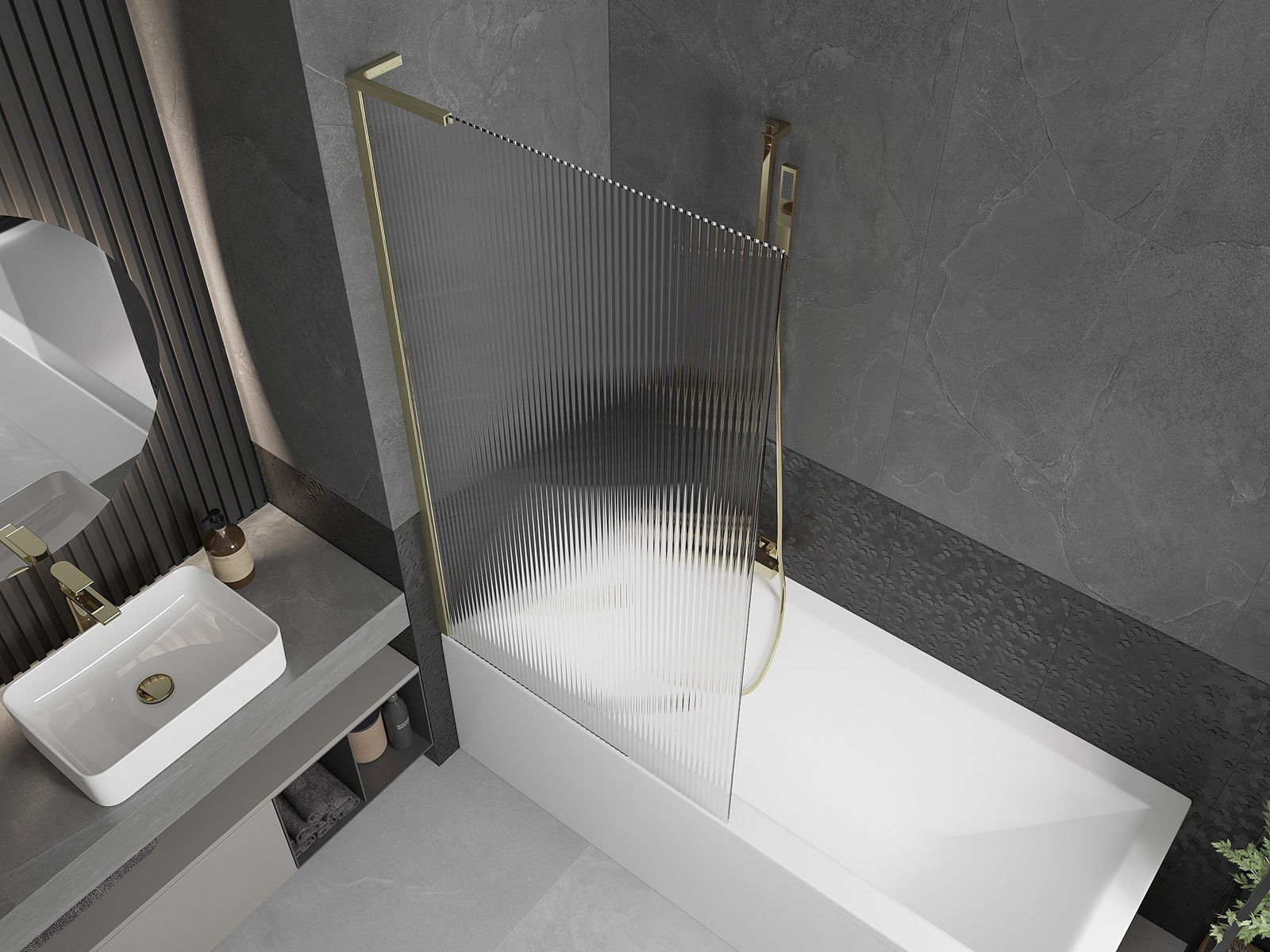 Mexen Next L viena spārna vannas ekrāns 90 x 150 cm, svītras, zelta matēts - 895-090-000-03-09-55
