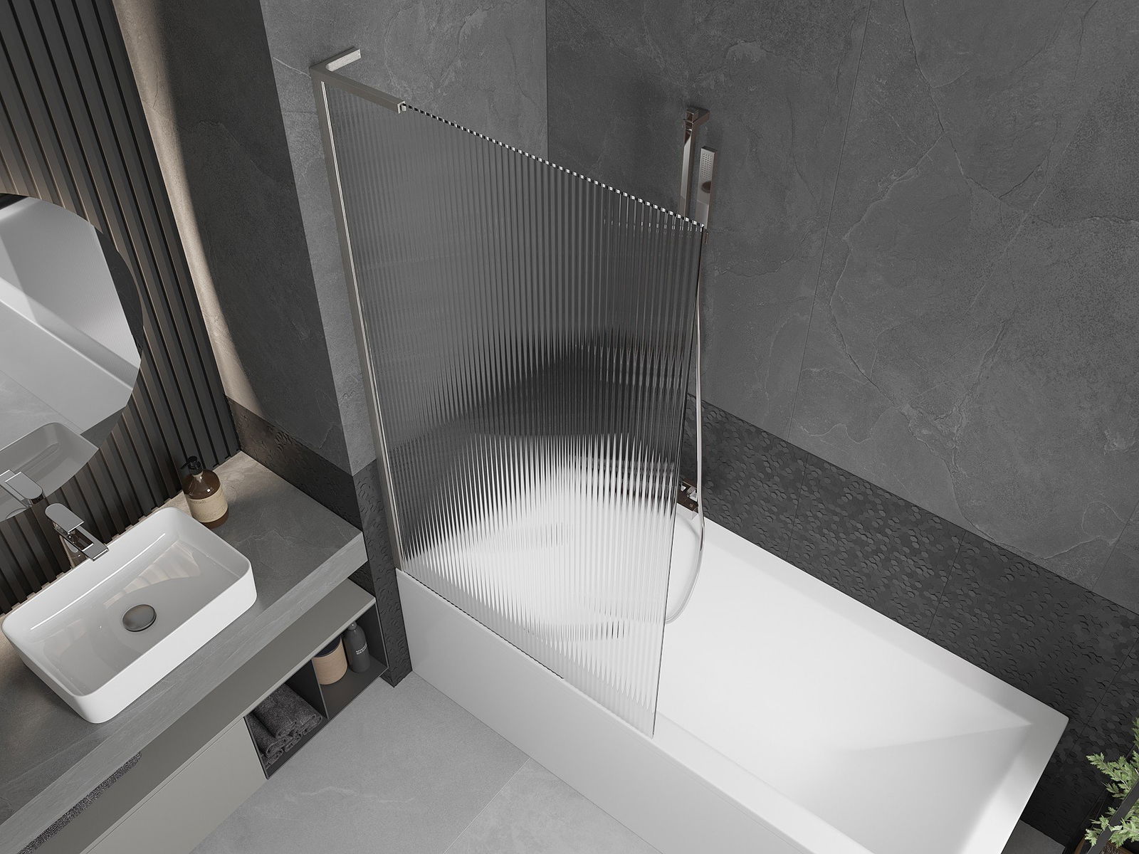 Mexen Next L 1-paneļa vannas ekrāns 90 x 150 cm, svītraini, matēts niķelis - 895-090-000-03-09-97