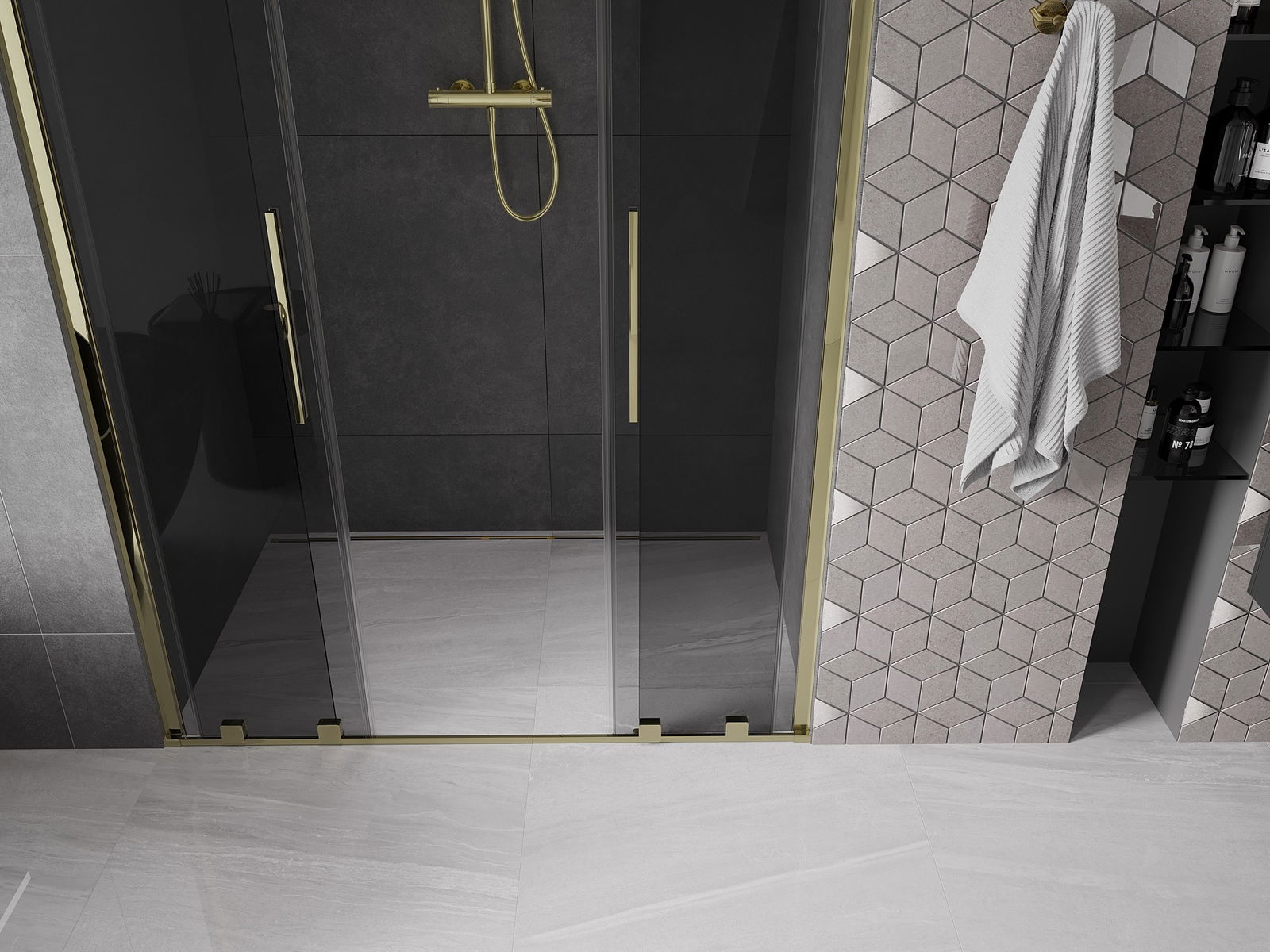 Mexen Velar L Duo bīdāmās dušas durvis 150 cm, grafīta, zelta - 871-150-003-42-50