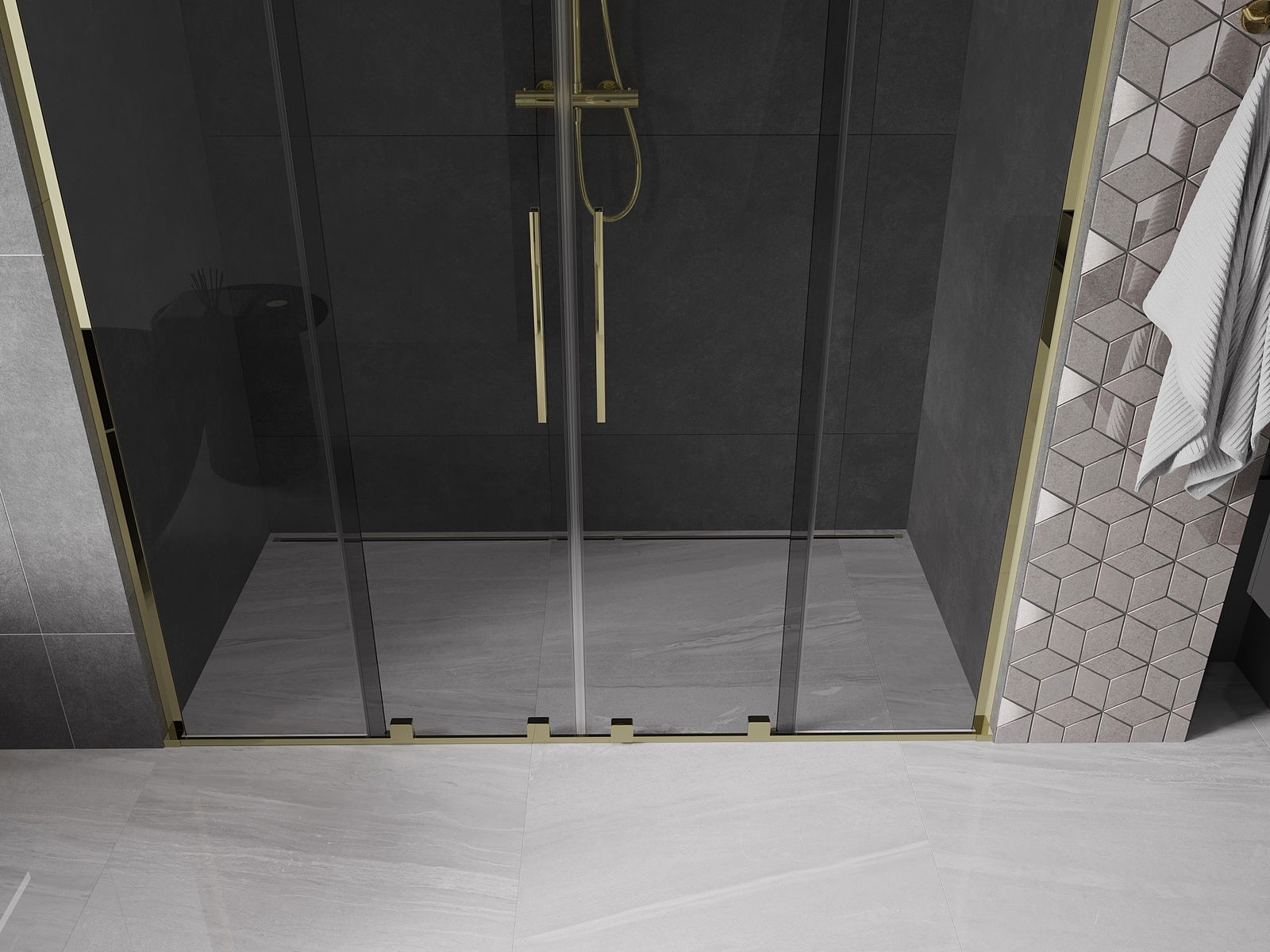 Mexen Velar L Duo bīdāmās dušas durvis 180 cm, grafīta, zelta - 871-180-003-42-50