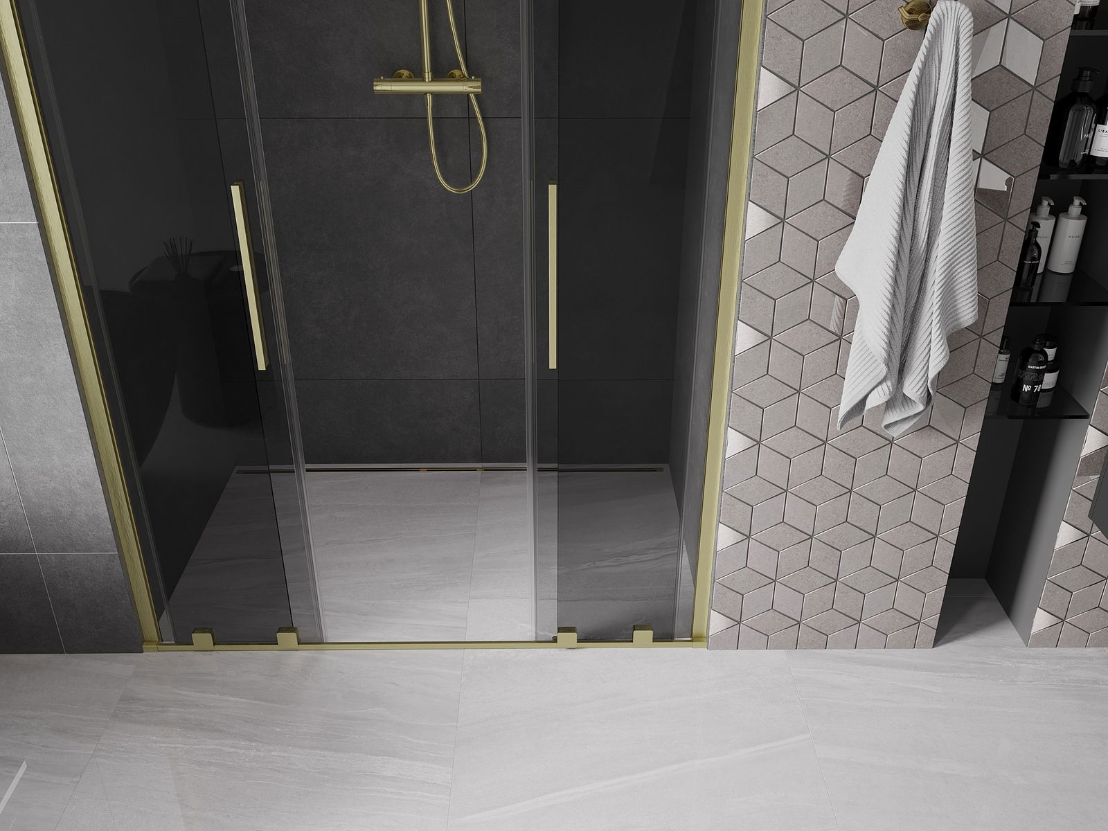 Mexen Velar L Duo bīdāmās dušas durvis 160 cm, grafīts, zelta mat�as krāsas - 871-160-003-42-55