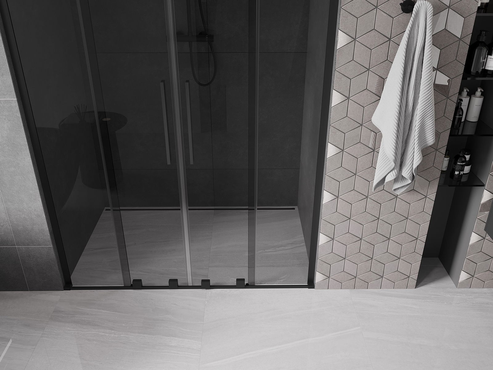 Mexen Velar L Duo bīdāmās dušas durvis 140 cm, grafīts, melnas - 871-140-003-42-70