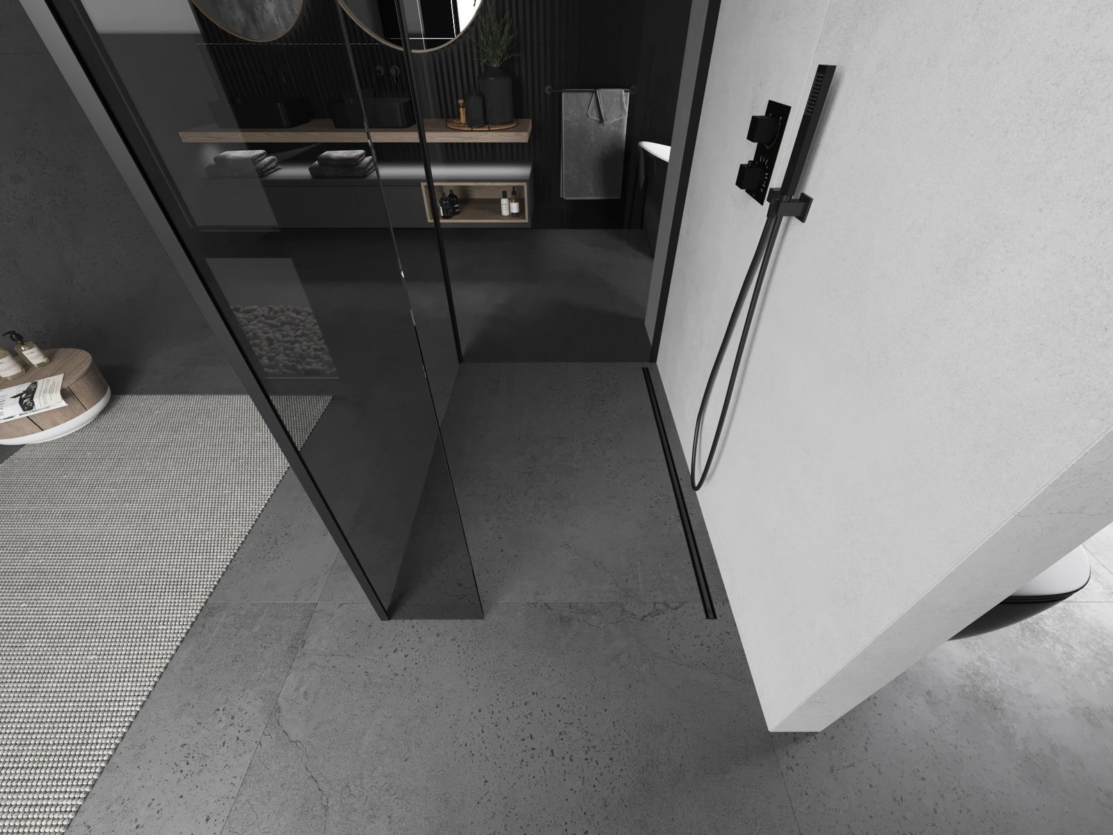 Mexen Kioto duša sienas Walk-in 125 x 70 x 40 cm, caurspīdīga, melna - 800-125-070-221-70-00-040