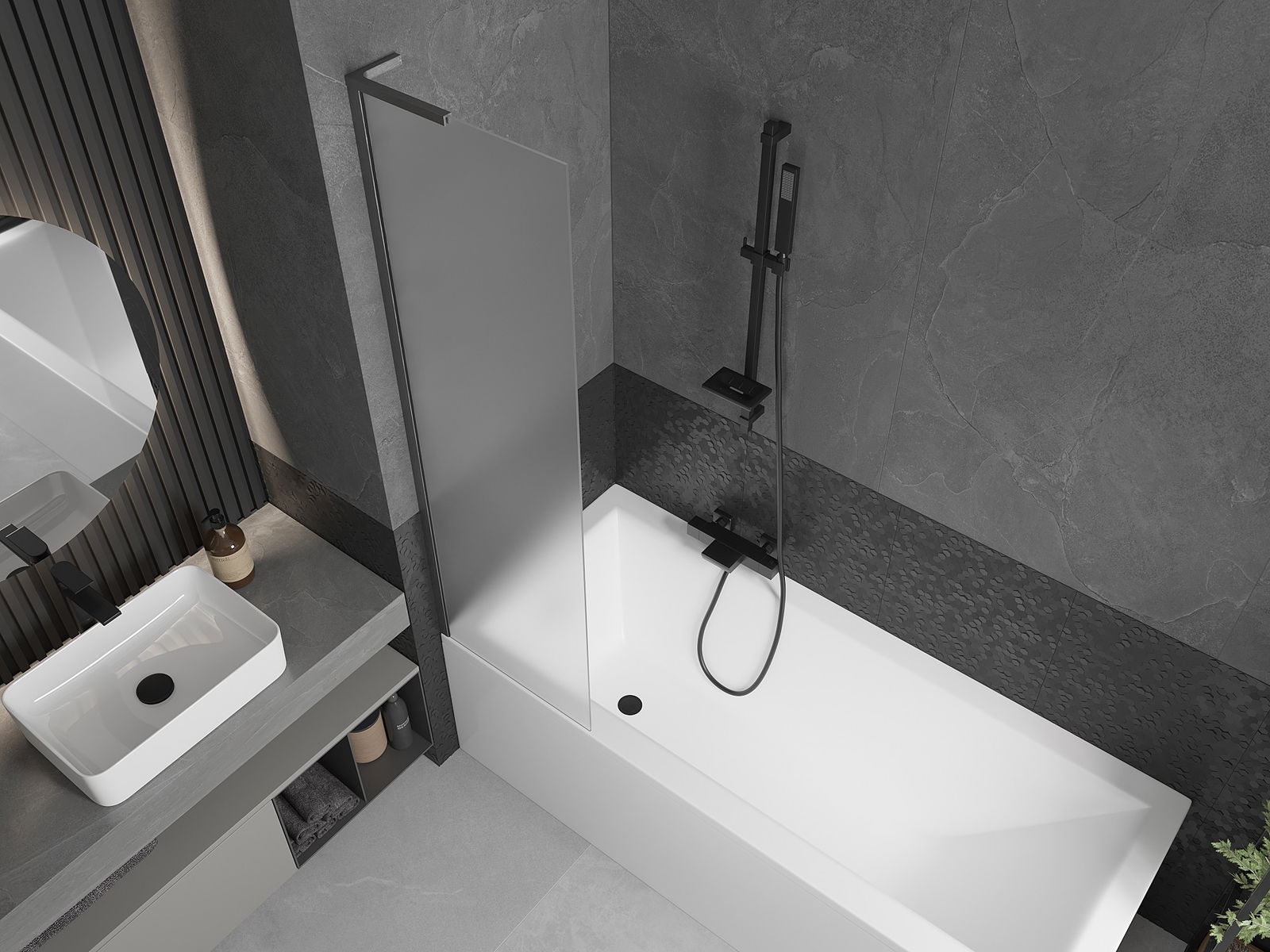 Efektīva aizsardzība pret ūdens izšļakstīšanos peldēšanās laikā. Ekrānam ir blīves, kas ideāli pielāgojas stikla virsmai un vannas malai. Funkcionāls risinājums, kas nodrošina drošību un vieglu tīrību.