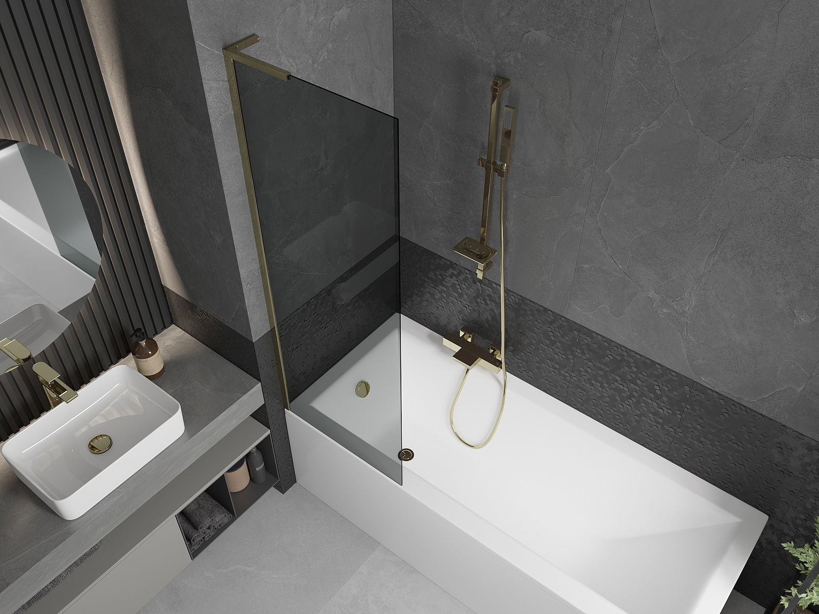 Mexen Next L vannas starpsiena ar vienu vērtni 60 x 150 cm, grafīts, zelta - 895-060-000-03-40-50