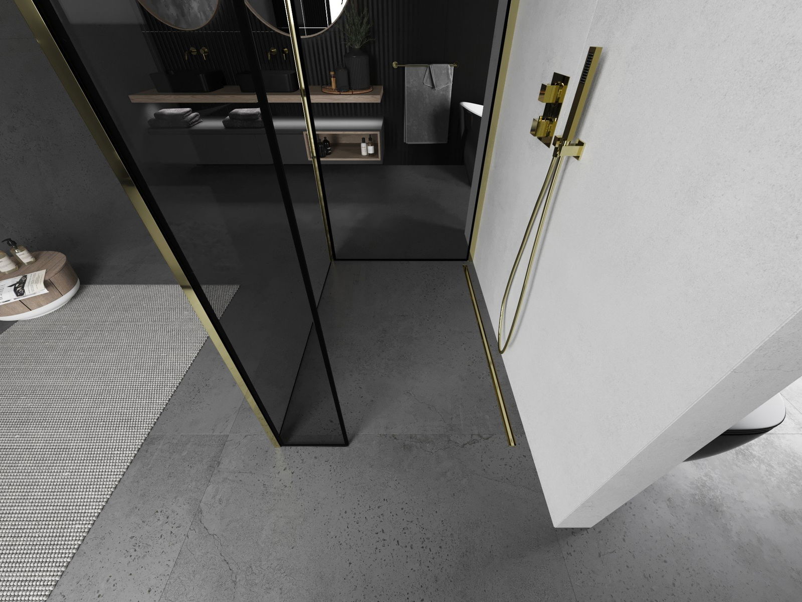 Mexen Kioto duša siena Walk-in 130 x 110 x 40 cm, melns rāmis, zeltains - 800-130-110-221-50-70-040