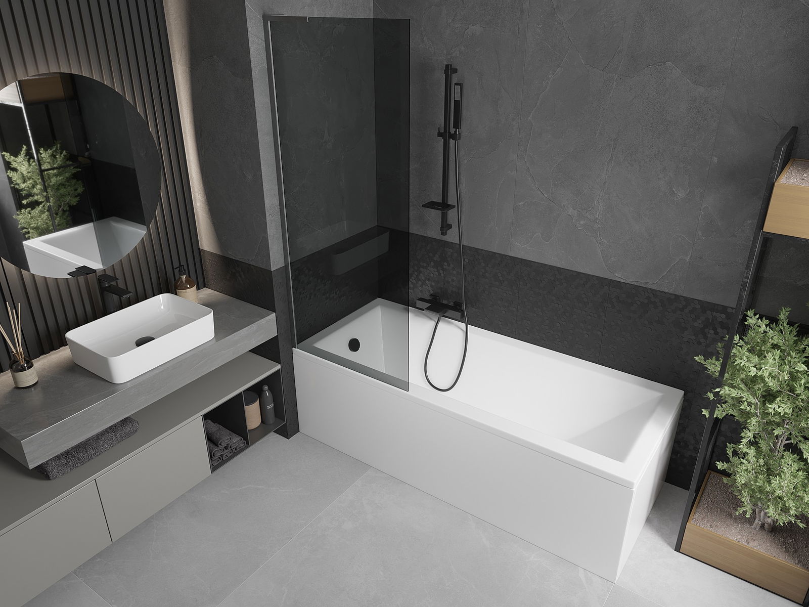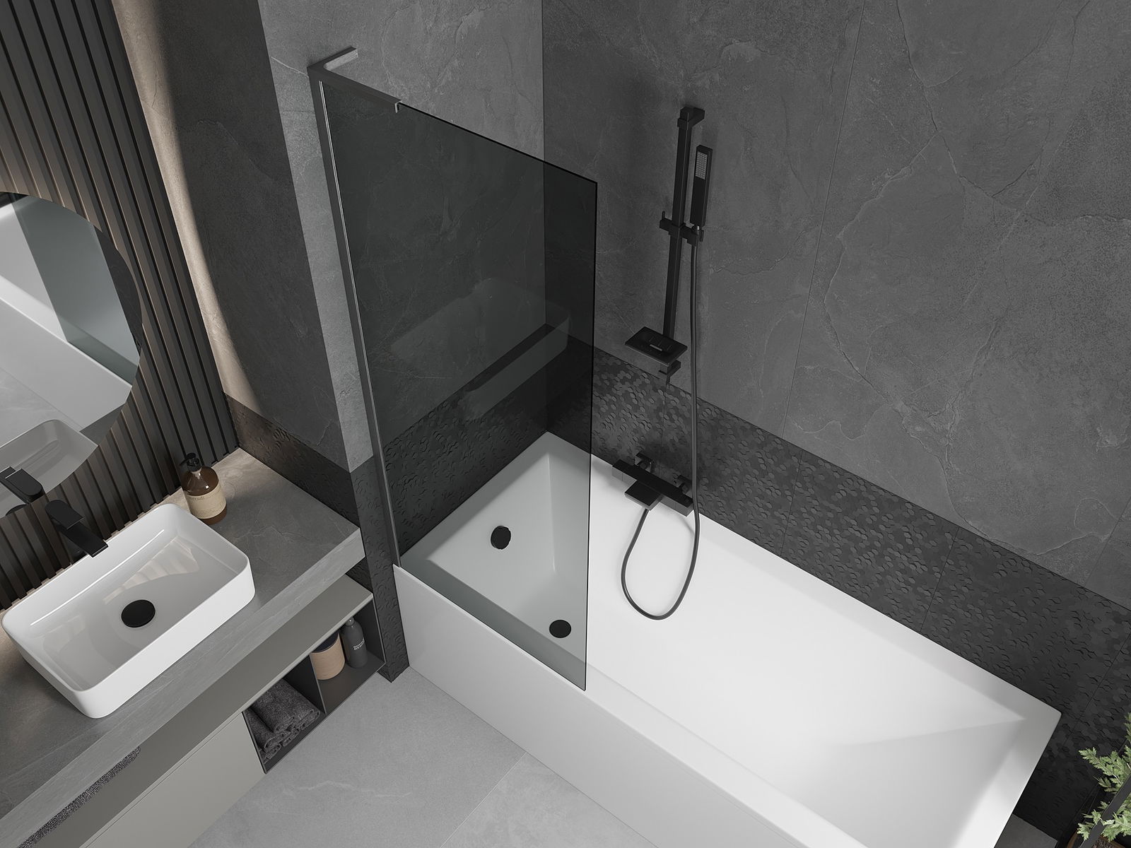 Efektīva aizsardzība pret ūdens izšļakstīšanos peldēšanās laikā. Ekrānam ir blīves, kas ideāli pielāgojas stikla virsmai un vannas malai. Funkcionāls risinājums, kas nodrošina drošību un vieglu tīrību.