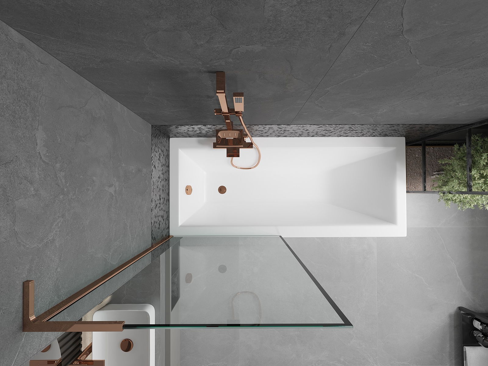 Mexen Next L vannas ekrāns ar vienu spārnu 80 x 150 cm, melns rāmītis, rozā zelts - 895-080-000-03-70-60