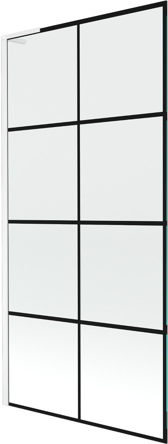 Mexen Next L vannas starpsiena ar vienu spārnu 90 x 150 cm, melns režģis, balts - 895-090-000-03-77-20