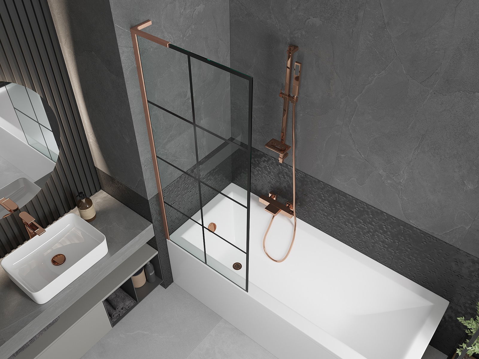 Mexen Next L vannas paravāns ar 1 durvi vērtni 70 x 150 cm, melns režģis, matēts varš - 895-070-000-03-77-65