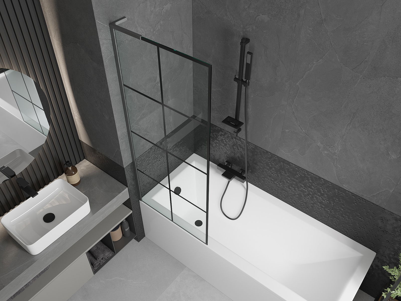 Mexen Next L vannas istabas ekrāns ar vienu spārnu 70 x 150 cm, melns režģis, gun gray matēts - 895-070-000-03-77-66