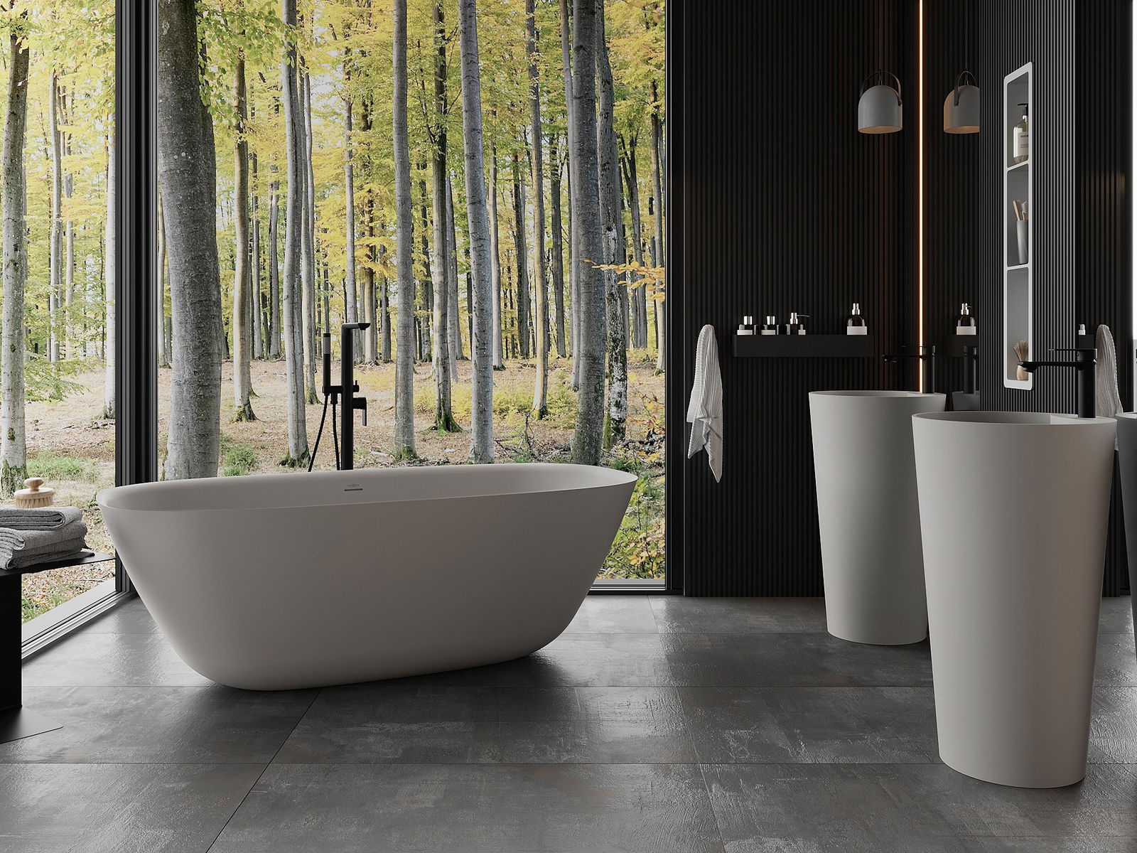 Matētā virsma lieliski izceļ produkta krāsas raksturu, piešķirot tam unikālu un izteiktu apdari. Vannas matētā struktūra piešķir vannas istabai eleganci, radot estētisku telpu.