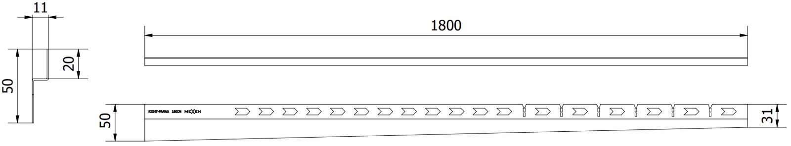 Līstei ir precīzi iestatīts slīpuma leņķis, kas efektīvi novirza ūdeni uz noteci, novēršot tās uzkrāšanos uz grīdas virsmas. Tas nodrošina efektīvu ūdens novadīšanu, kas samazina peļķu veidošanās risku un nodrošina sausu un drošu virsmu.