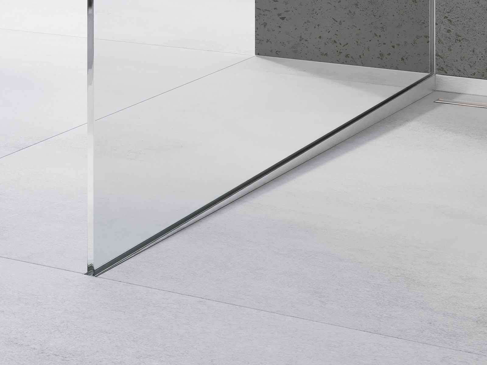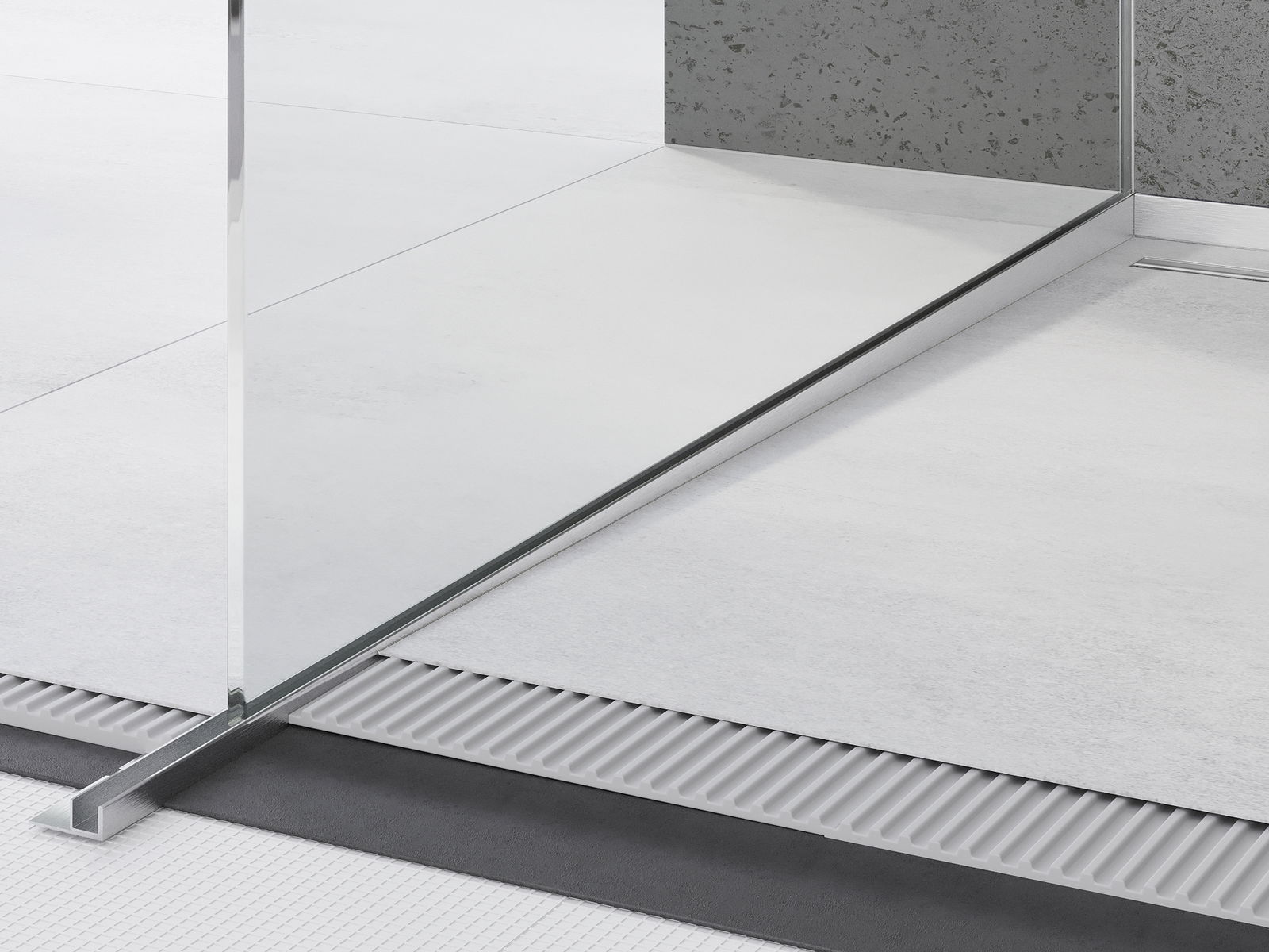 Sliede nodrošina vietu dušas stikla uzstādīšanai, kas atvieglo uzstādīšanas procesu un ļauj noslēpt apdares darbu ar silikona palīdzību