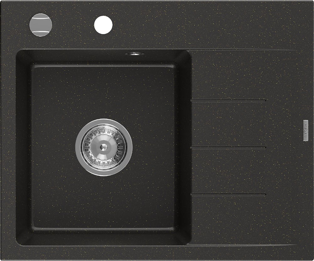 Mexen Ben granitēta virtuves izlietne ar vienu nodalījumu un noteku, kreisā 600 x 500 mm, melna/zeltains metāliks, sifons