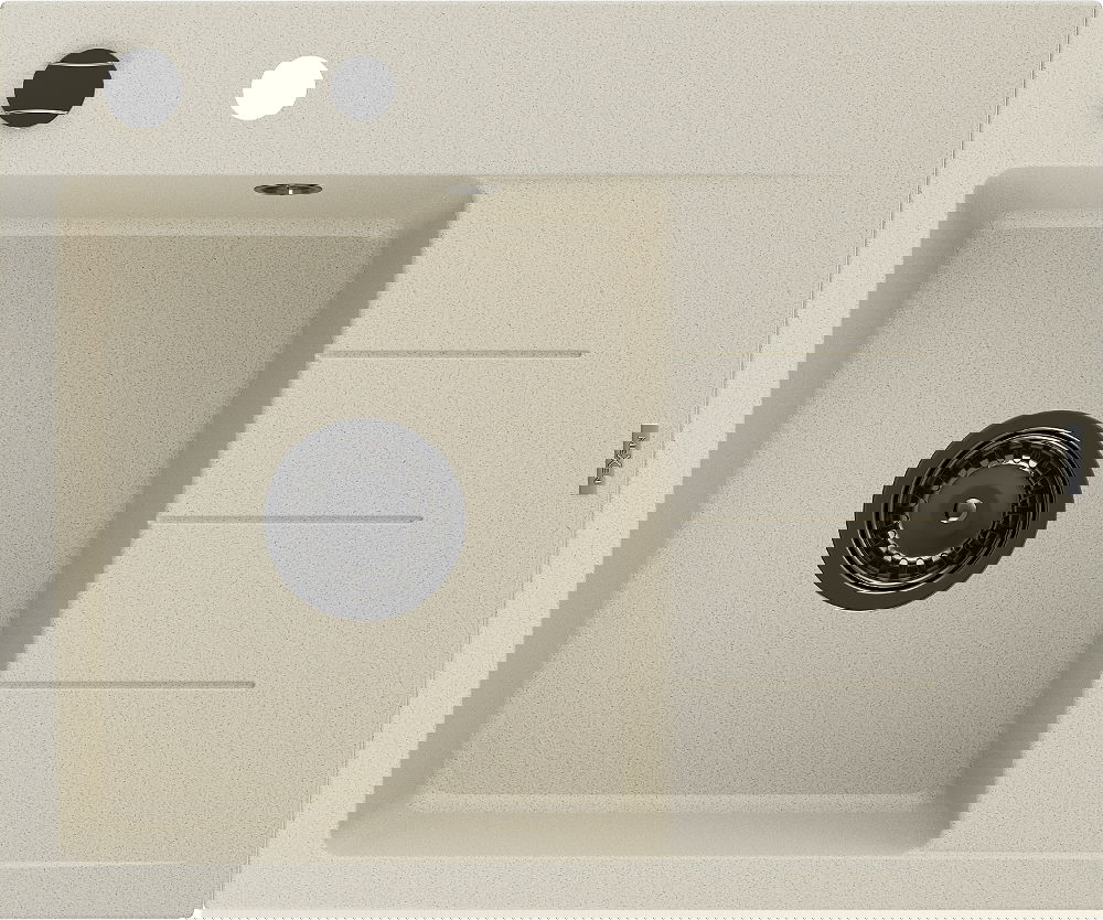 Izlietnei ir padziļināts caurums ar diametru 35 mm, kuru varat izsist patstāvīgi. To var izmantot, piemēram, šķidruma dozatora uzstādīšanai, kas novērsīs plastmasas pudeļu klātbūtni virtuvē un piešķirs tai elegantu apdari.