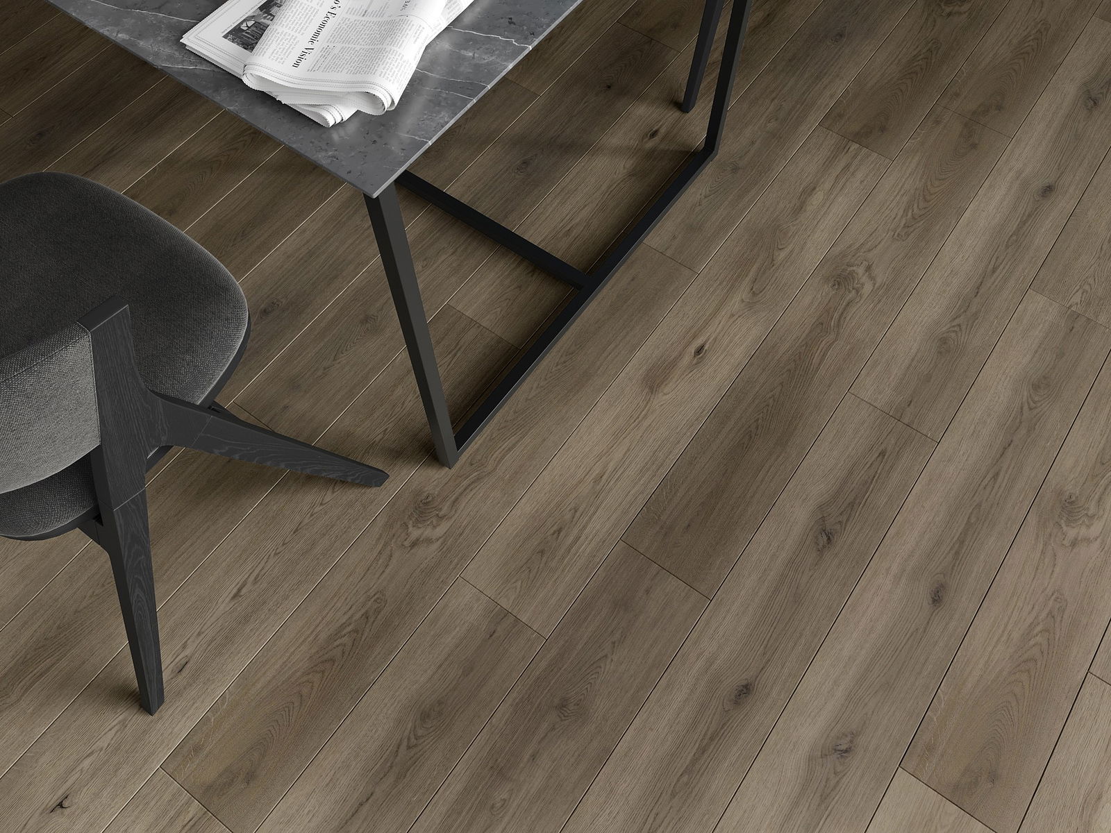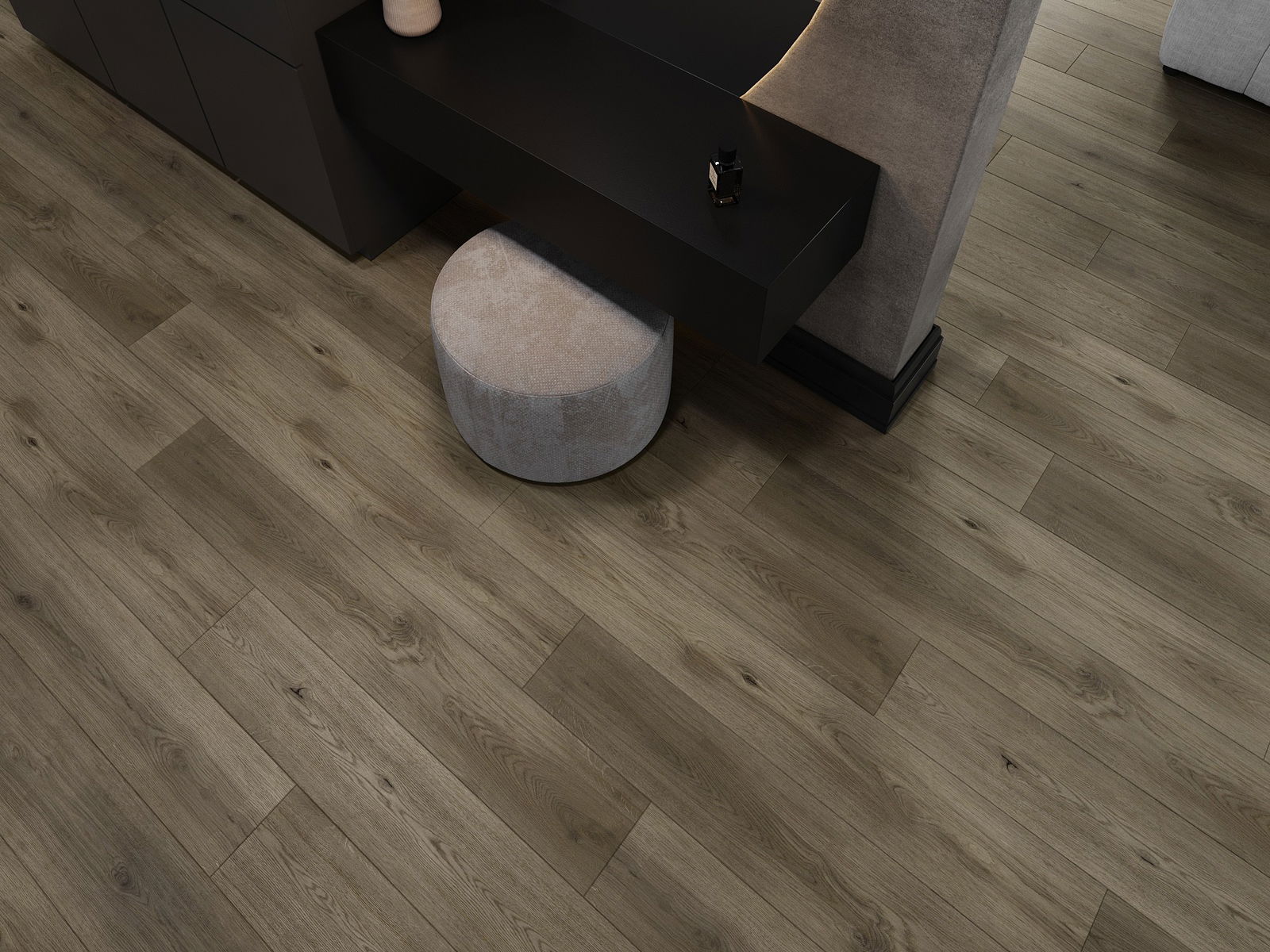 Paneļiem ir 4-pusējs fuga - katra mala ir frēzēta tā, lai pēc ieklāšanas izveidotos savienojums burta "V" formā. Šāds dizains padara grīdu izteiksmīgāku, piešķirot tai dziļumu un estētisku raksturu. Šis efekts ir īpaši novērtēts mūsdienu interjeros, kur detaļas izceļ telpas unikālo izskatu.