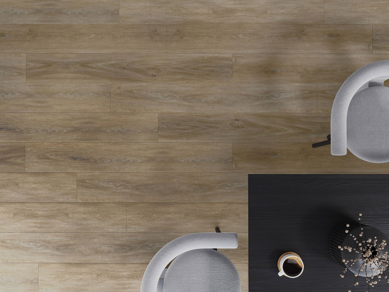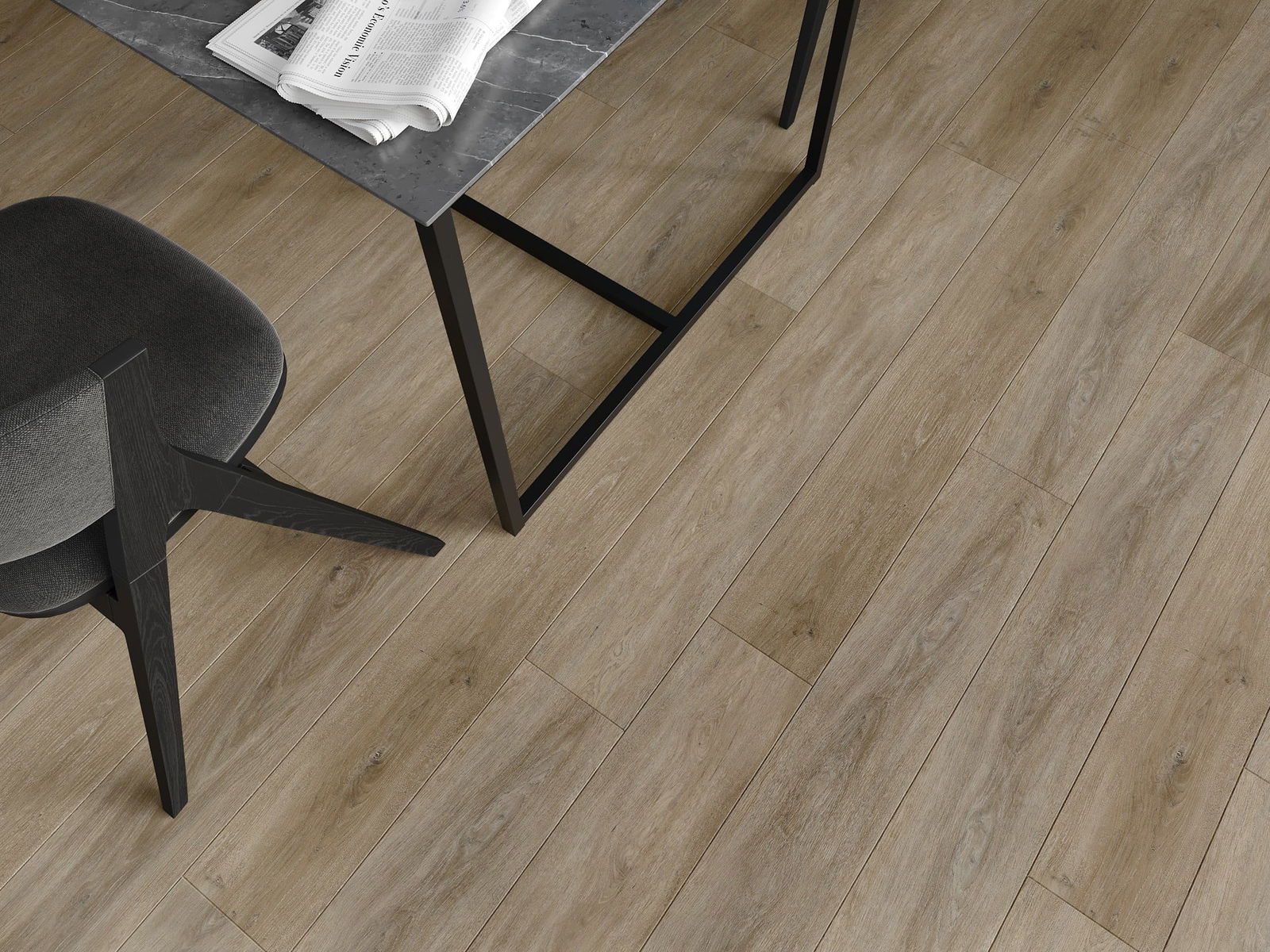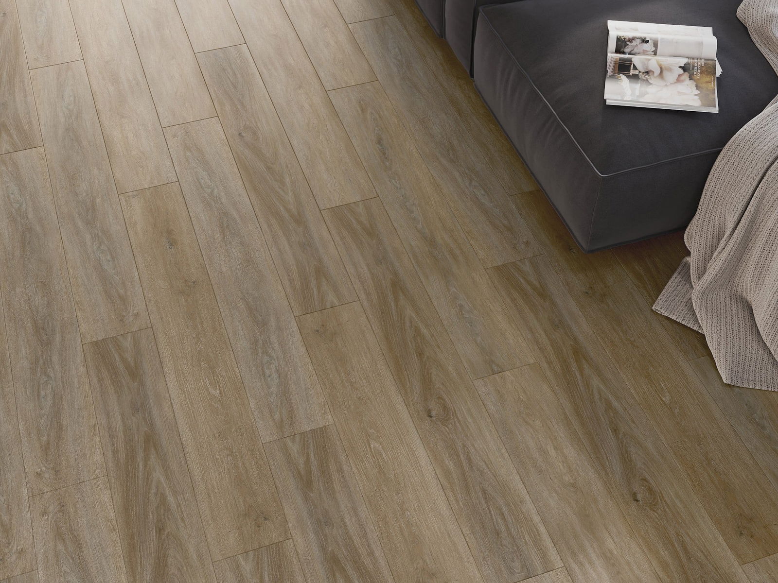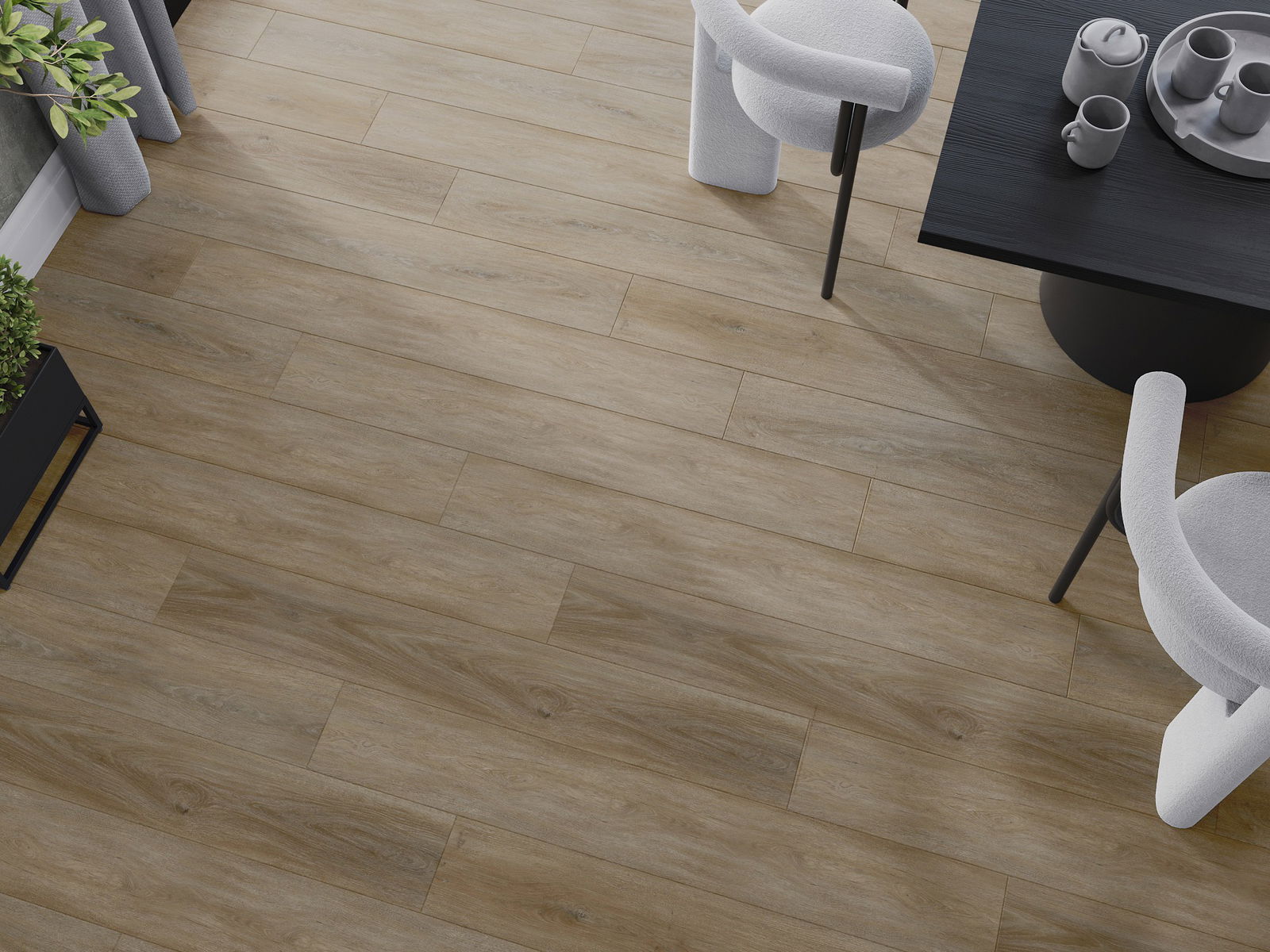 Paneļiem ir 4 pušu šuves - katra mala ir frēzēta tādā veidā, lai, tos saliekot, izveidotos savienojums V burta formā. Šāds dizains padara grīdu izteiksmīgāku, kas piešķir tai dziļumu un estētisku raksturu. Šis efekts ir īpaši novērtēts mūsdienu iekārtojumos, kur detaļas izceļ interjera unikālo izskatu.