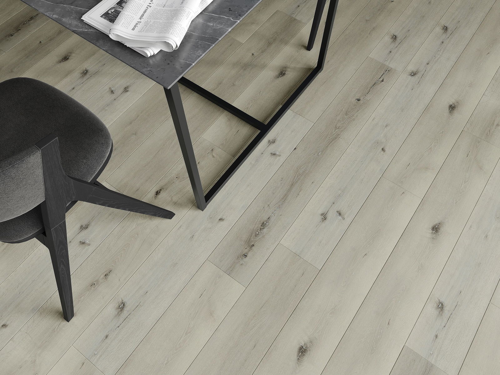 Paneļiem ir 4-pusējs fuga - katra mala ir frēzēta tā, lai pēc ieklāšanas izveidotos savienojums burta "V" formā. Šāds dizains padara grīdu izteiksmīgāku, piešķirot tai dziļumu un estētisku raksturu. Šis efekts ir īpaši novērtēts mūsdienu interjeros, kur detaļas izceļ telpas unikālo izskatu.
