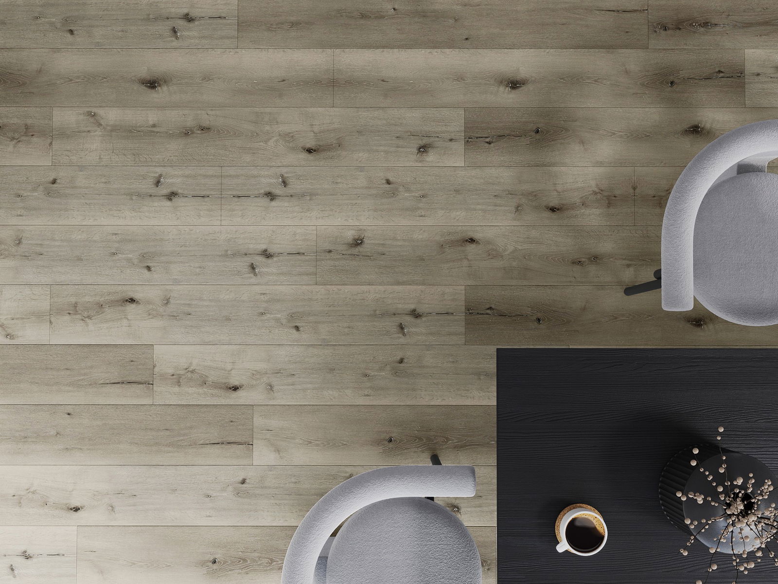 Paneļiem ir 4-pusējs fuga - katra mala ir frēzēta tā, lai pēc ieklāšanas izveidotos savienojums burta "V" formā. Šāds dizains padara grīdu izteiksmīgāku, piešķirot tai dziļumu un estētisku raksturu. Šis efekts ir īpaši novērtēts mūsdienu interjeros, kur detaļas izceļ telpas unikālo izskatu.