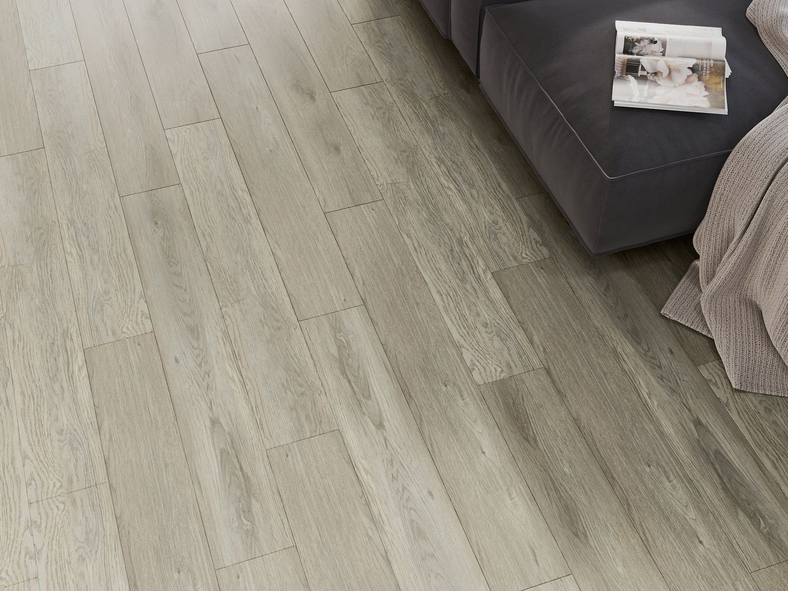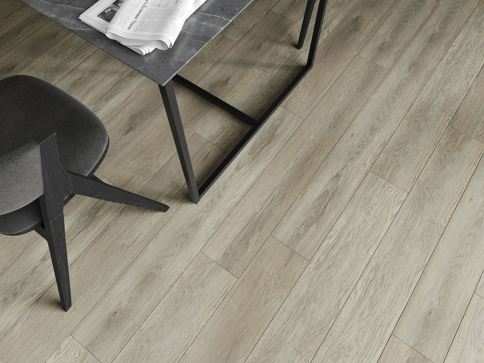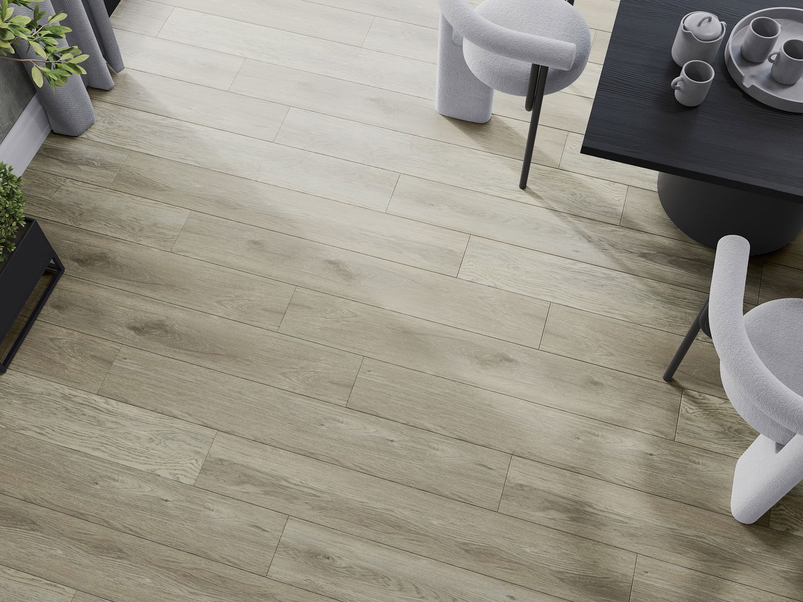 Paneļiem ir 4-pusējs fuga - katra mala ir frēzēta tā, lai pēc ieklāšanas izveidotos savienojums burta "V" formā. Šāds dizains padara grīdu izteiksmīgāku, piešķirot tai dziļumu un estētisku raksturu. Šis efekts ir īpaši novērtēts mūsdienu interjeros, kur detaļas izceļ telpas unikālo izskatu.