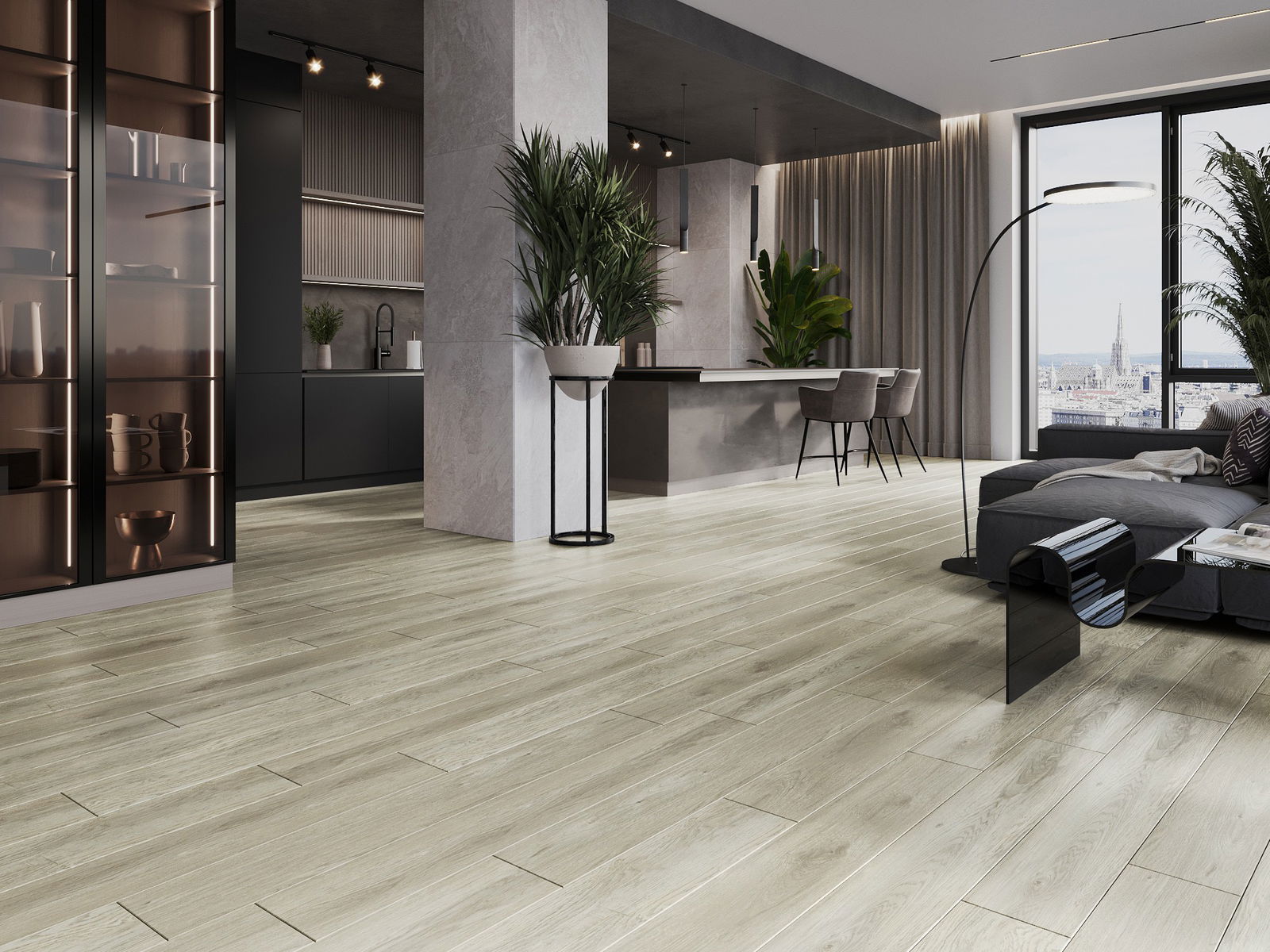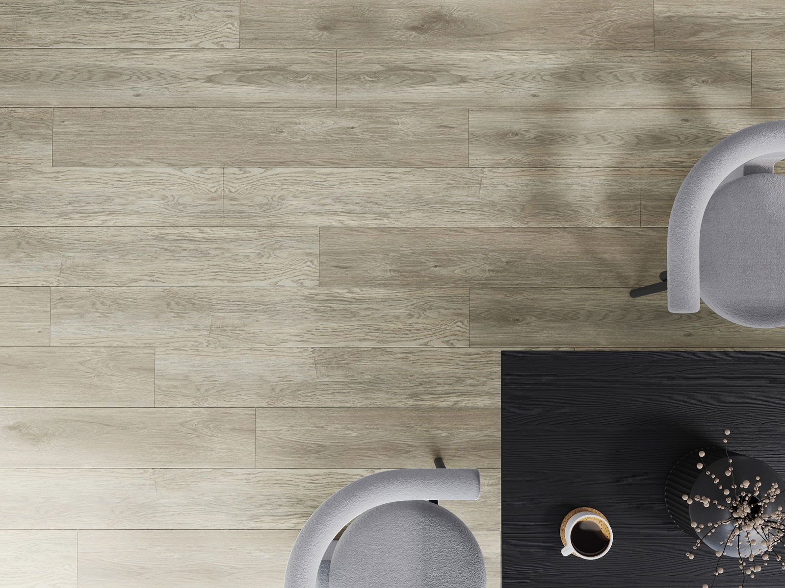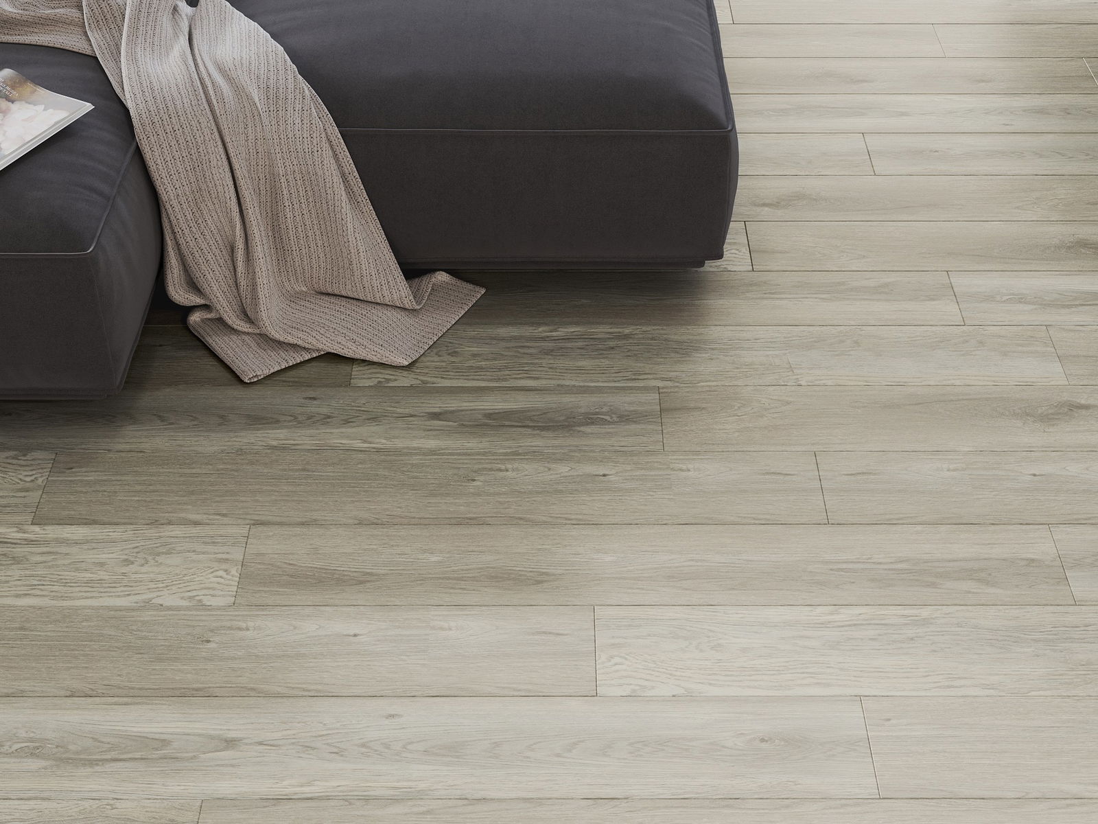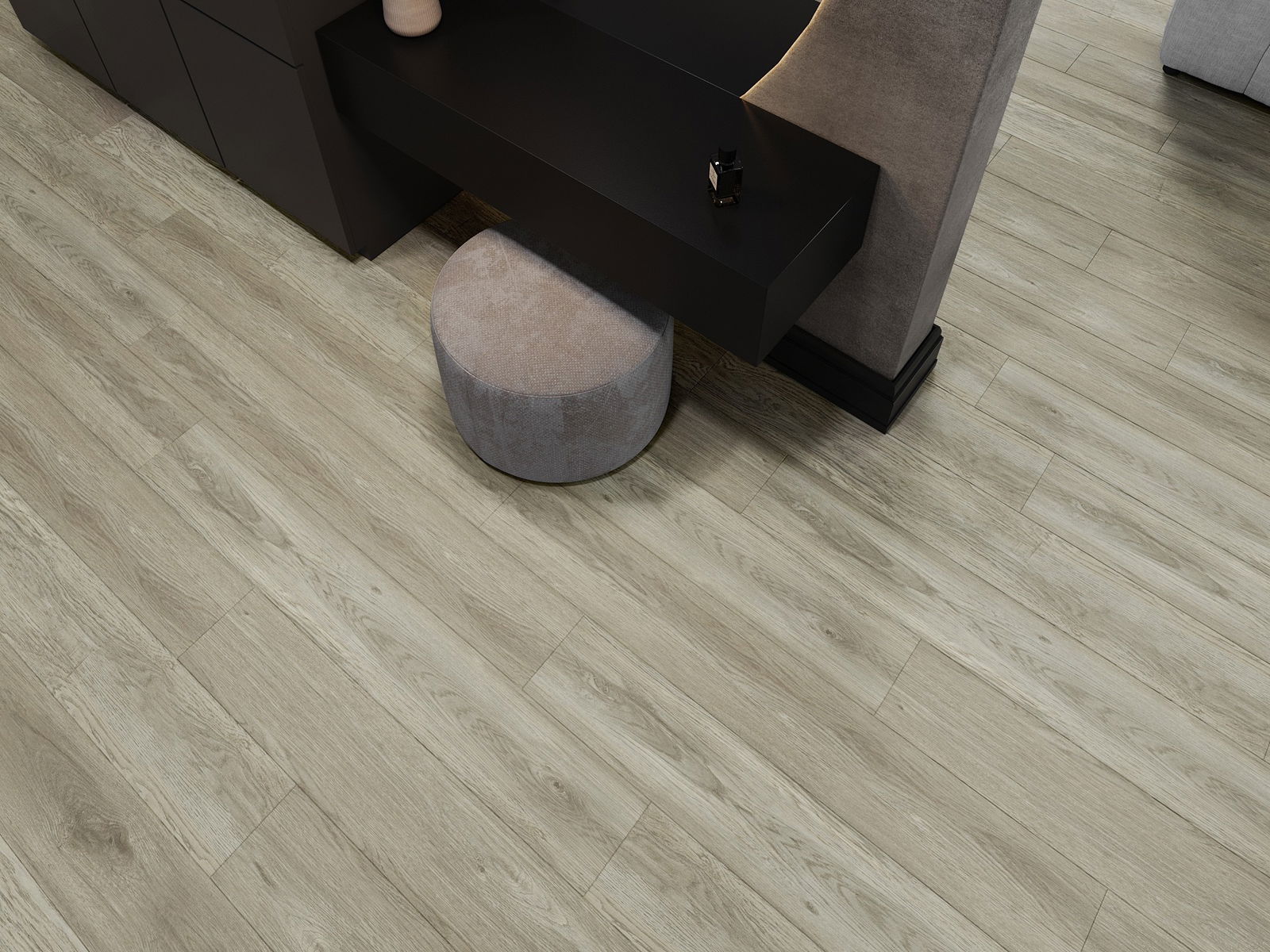 Paneļiem ir 4-pusējs fuga - katra mala ir frēzēta tā, lai pēc ieklāšanas izveidotos savienojums burta "V" formā. Šāds dizains padara grīdu izteiksmīgāku, piešķirot tai dziļumu un estētisku raksturu. Šis efekts ir īpaši novērtēts mūsdienu interjeros, kur detaļas izceļ telpas unikālo izskatu.