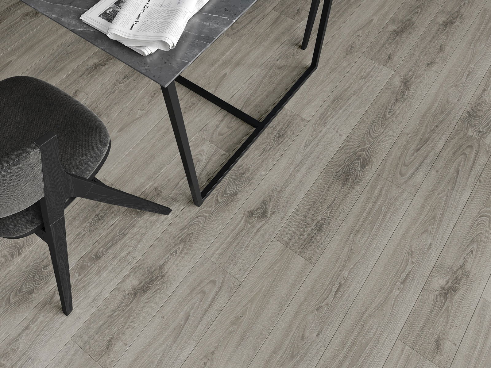 Paneļiem ir 4-pusējs fuga - katra mala ir frēzēta tā, lai pēc ieklāšanas izveidotos savienojums burta "V" formā. Šāds dizains padara grīdu izteiksmīgāku, piešķirot tai dziļumu un estētisku raksturu. Šis efekts ir īpaši novērtēts mūsdienu interjeros, kur detaļas izceļ telpas unikālo izskatu.