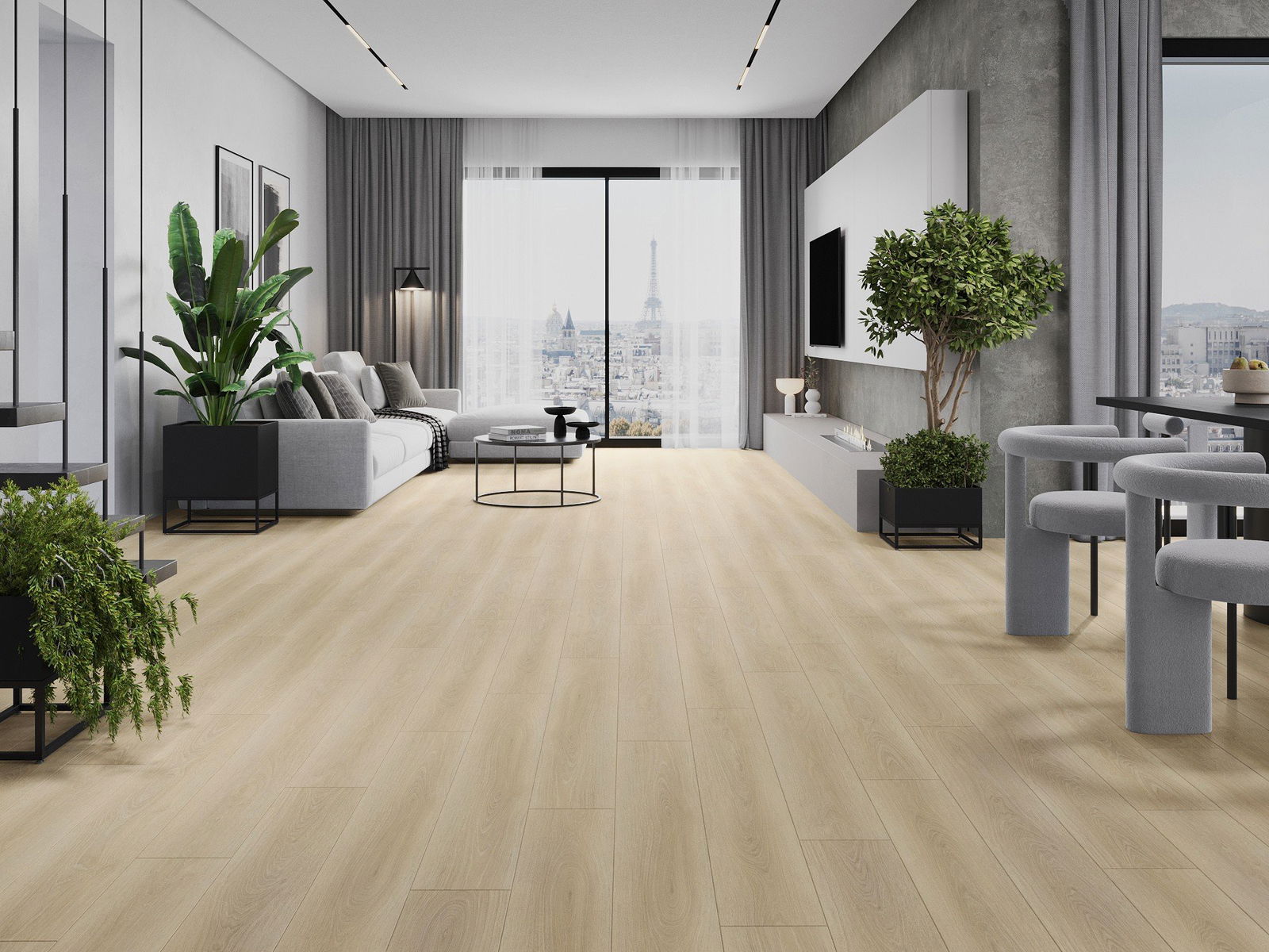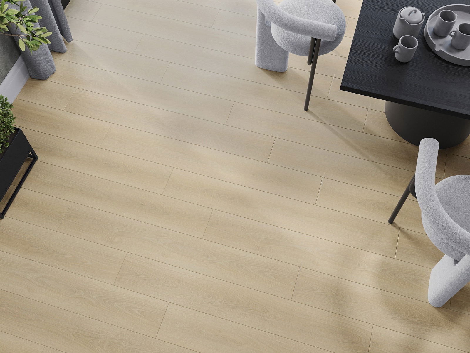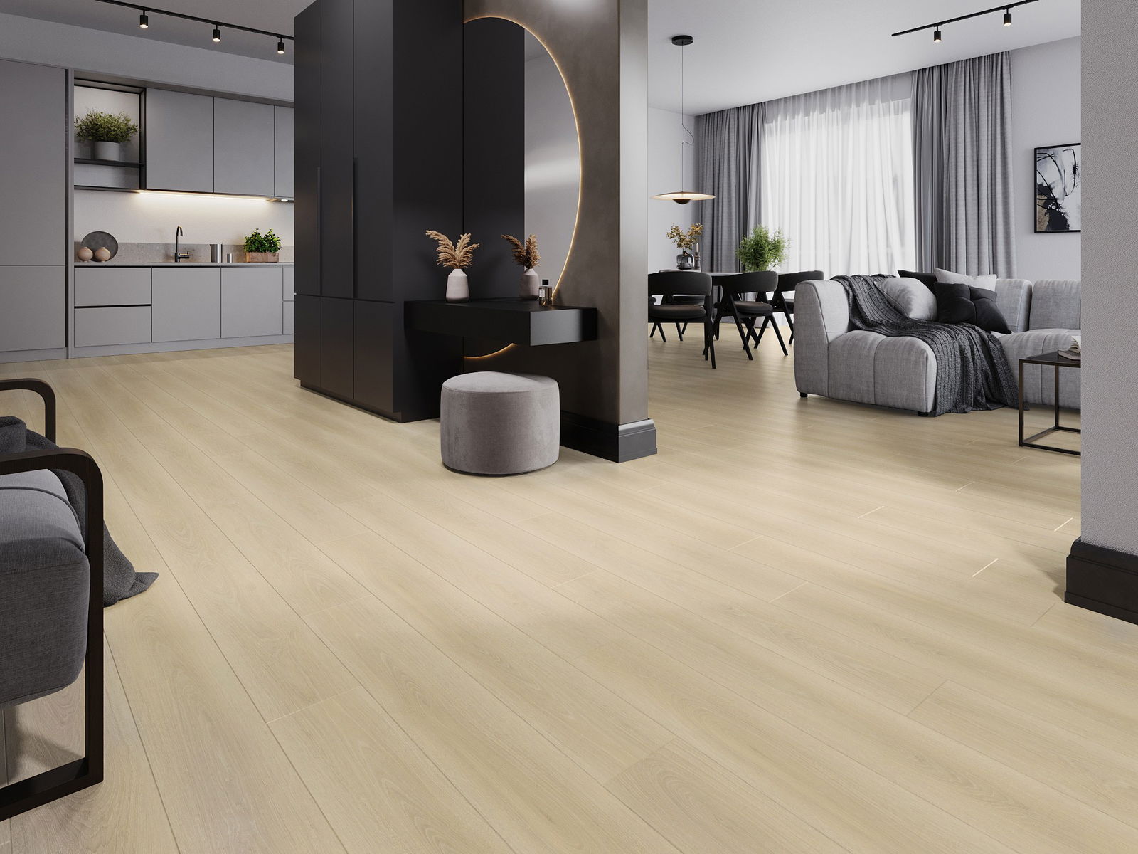 Mexen Charlotte ir moderns vinila paneļu paraugs ar izmēriem 1240 x 182 mm, biezumu 6,5 mm ar integrētu IXPE pamatni 1,5 mm. Pateicoties 100% ūdensnoturībai un augstajai pretestībai pret bojājumiem, tas ir ideāli piemērots jebkurā interjerā. Lietošanas klase 32 garantē izturību, un inovatīvais montāžas sistēma Uniclick 2G nodrošina vieglu un ātru instalāciju. Turklāt, 4-kārtīga V-Veida slīpētājkantis un viegli tīrāma virsma uzsver produkta funkcionalitāti un estētiku.