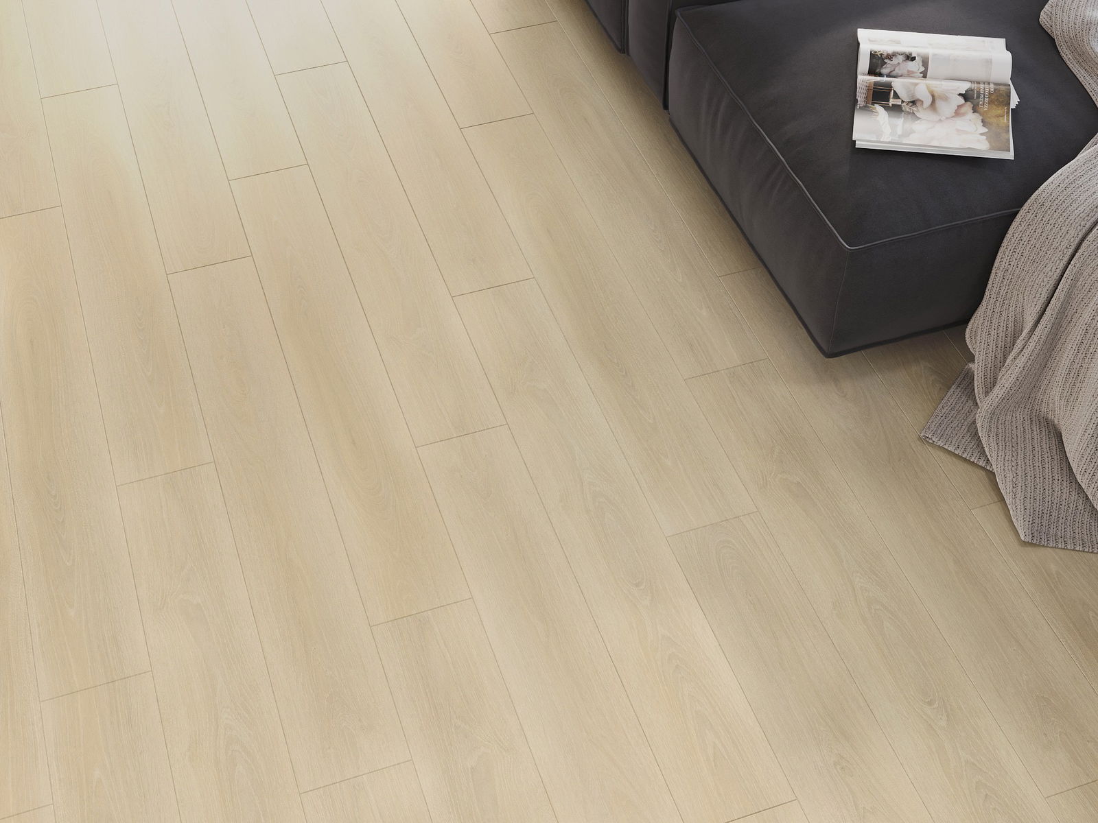 Paneļiem ir 4-pusējs fuga - katra mala ir frēzēta tā, lai pēc ieklāšanas izveidotos savienojums burta "V" formā. Šāds dizains padara grīdu izteiksmīgāku, piešķirot tai dziļumu un estētisku raksturu. Šis efekts ir īpaši novērtēts mūsdienu interjeros, kur detaļas izceļ telpas unikālo izskatu.