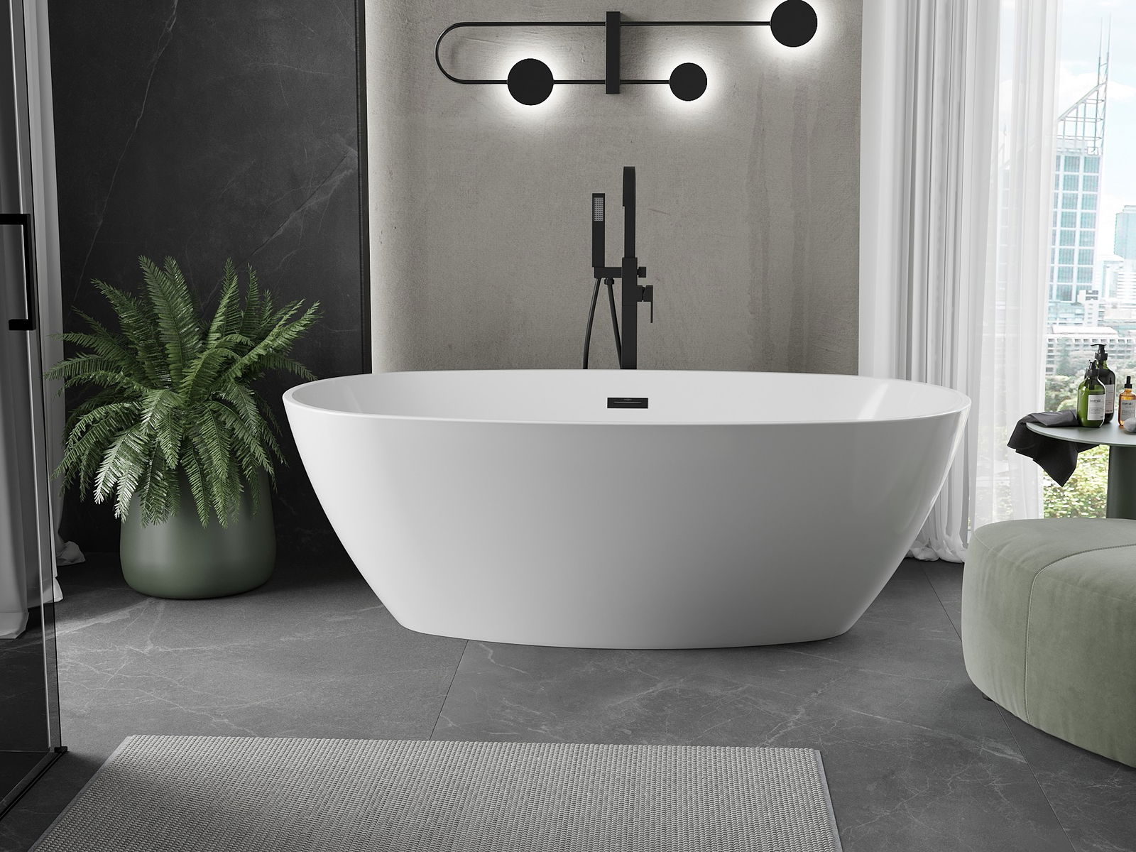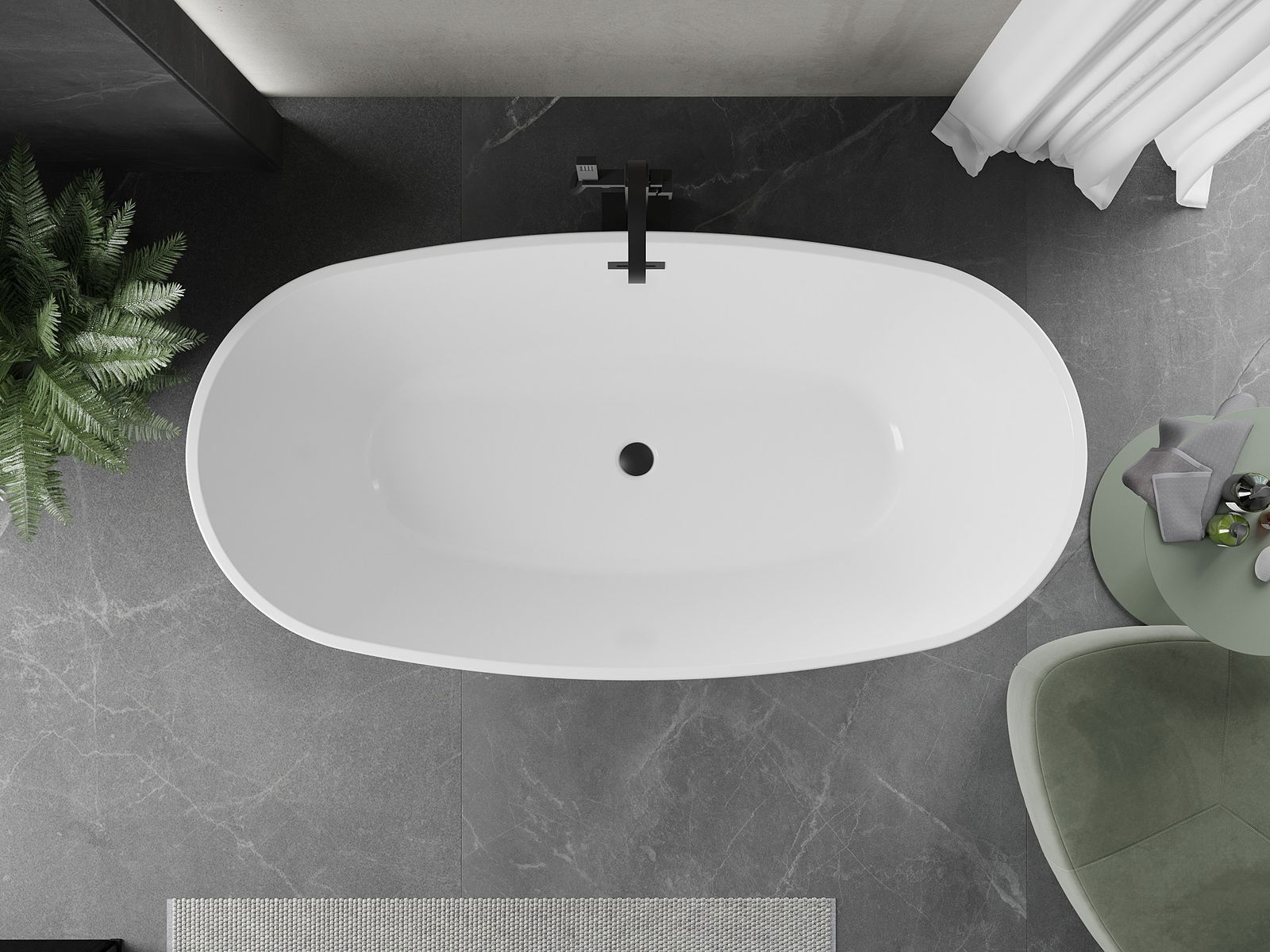 Mexen Eris brīvi stāvoša vanna 180 x 95 cm, balta, melns pārplūdes - 53441809500-70