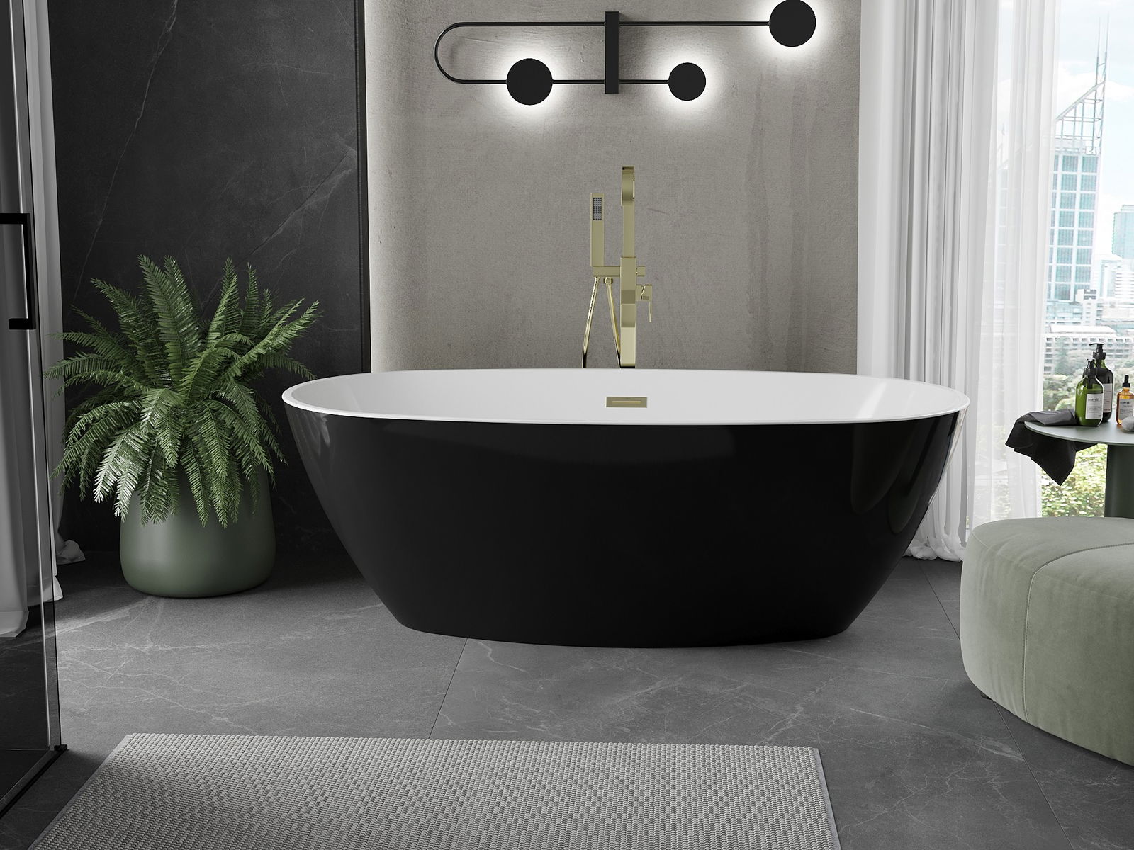 Mexen Eris brīvi stāvoša vanna 180 x 95 cm, balta/melnā, pārplūde zeltīta - 53441809575-50