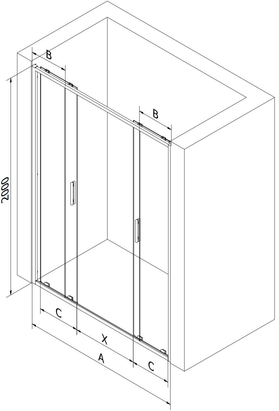 Mexen Exo divvietīgas dušas durvis, 200 cm, caurspīdīgas, melnas - 8152-200-000-70-00