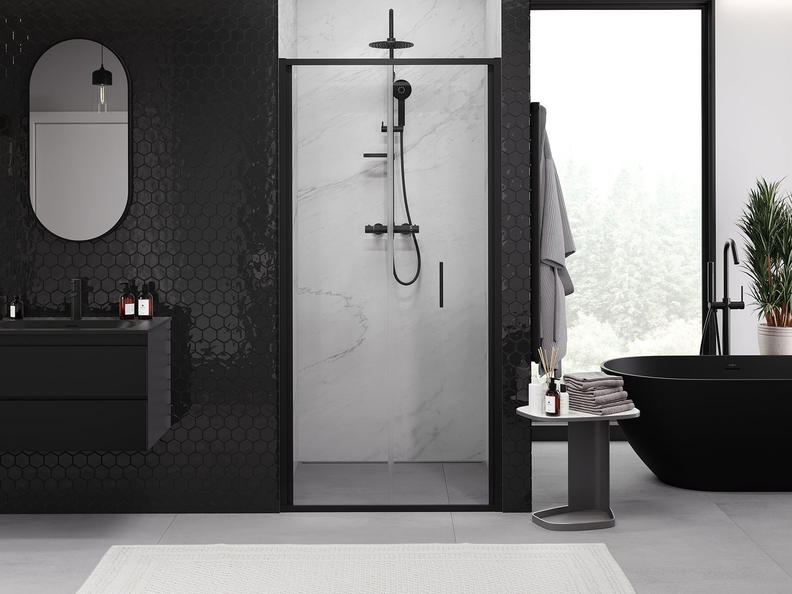 Iespēja salocīt durvis gan uz āru, gan uz iekšpusi, ļauj iegūt vairāk vietas, kad duša netiek izmantota. Tas ir ideāls risinājums mazākām vannas istabām, maksimāli izmantojot pieejamo telpu.