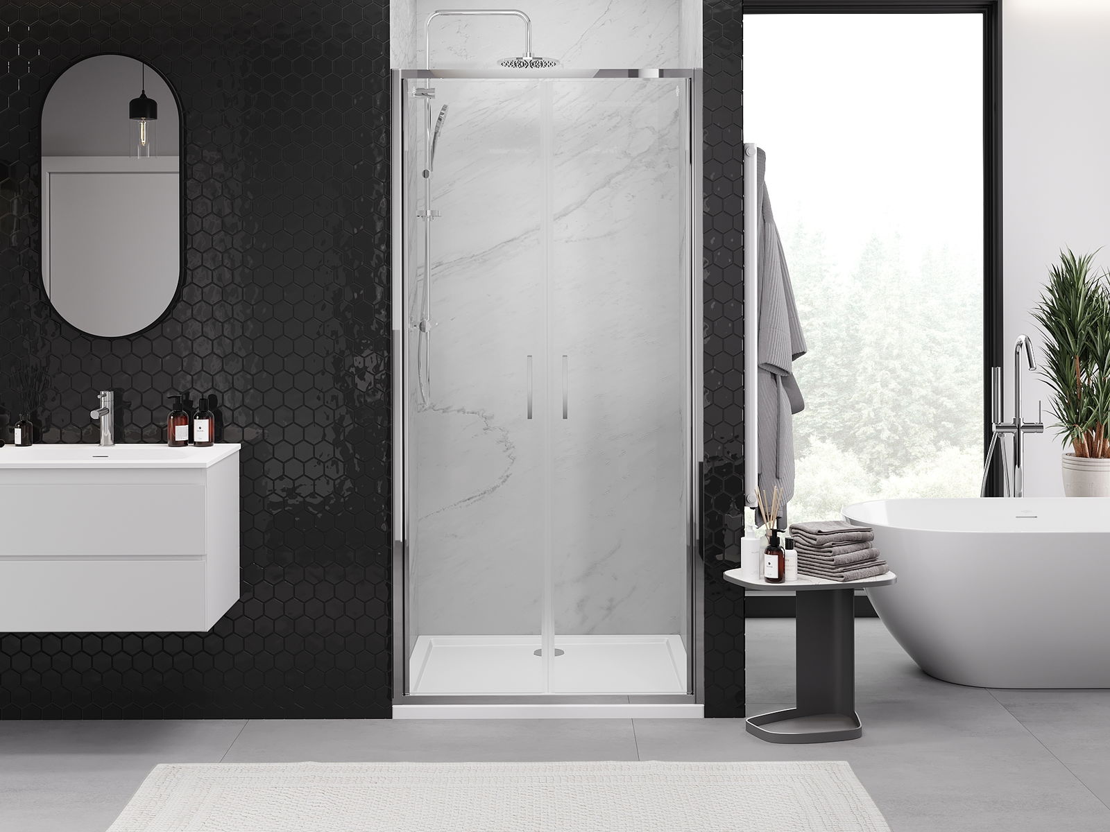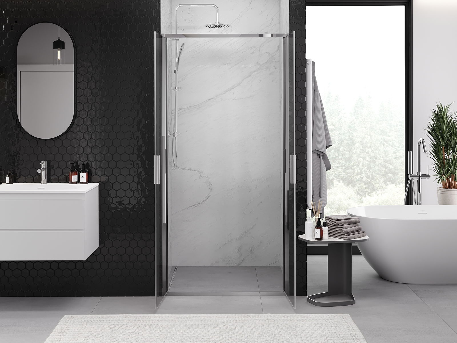 Produktu, atkarībā no vajadzībām, var uzstādīt gan uz dušas paliktņa, gan tieši uz grīdas. Universālā montāžas metode ļauj pielāgot produktu dažāda veida vannas istabām un telpas konfigurācijām.