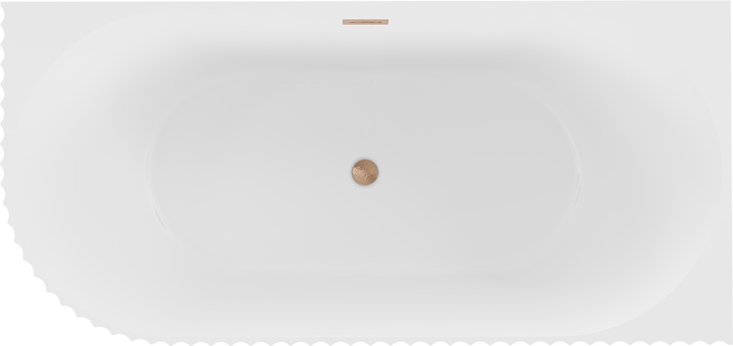 Mexen Gia brīvi stāvoša stūra rievota vanna labā 150 x 75 cm, balts mats, pārplūde birstēts varš - 52701507501P-65