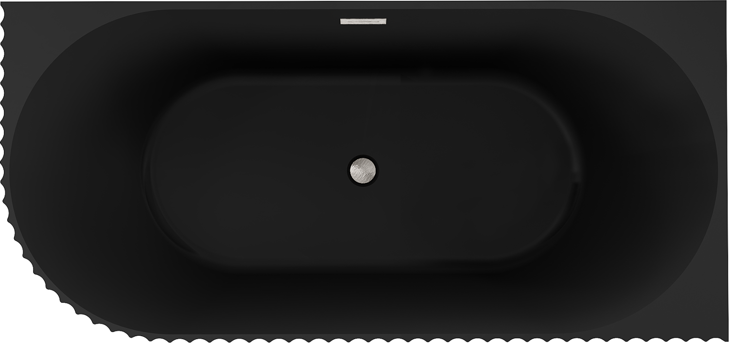 Mexen Gia brīvi stāvoša stūra rievota vanna labā 150 x 75 cm, melna matēta, pārplūde matēts niķelis - 52701507571P-97