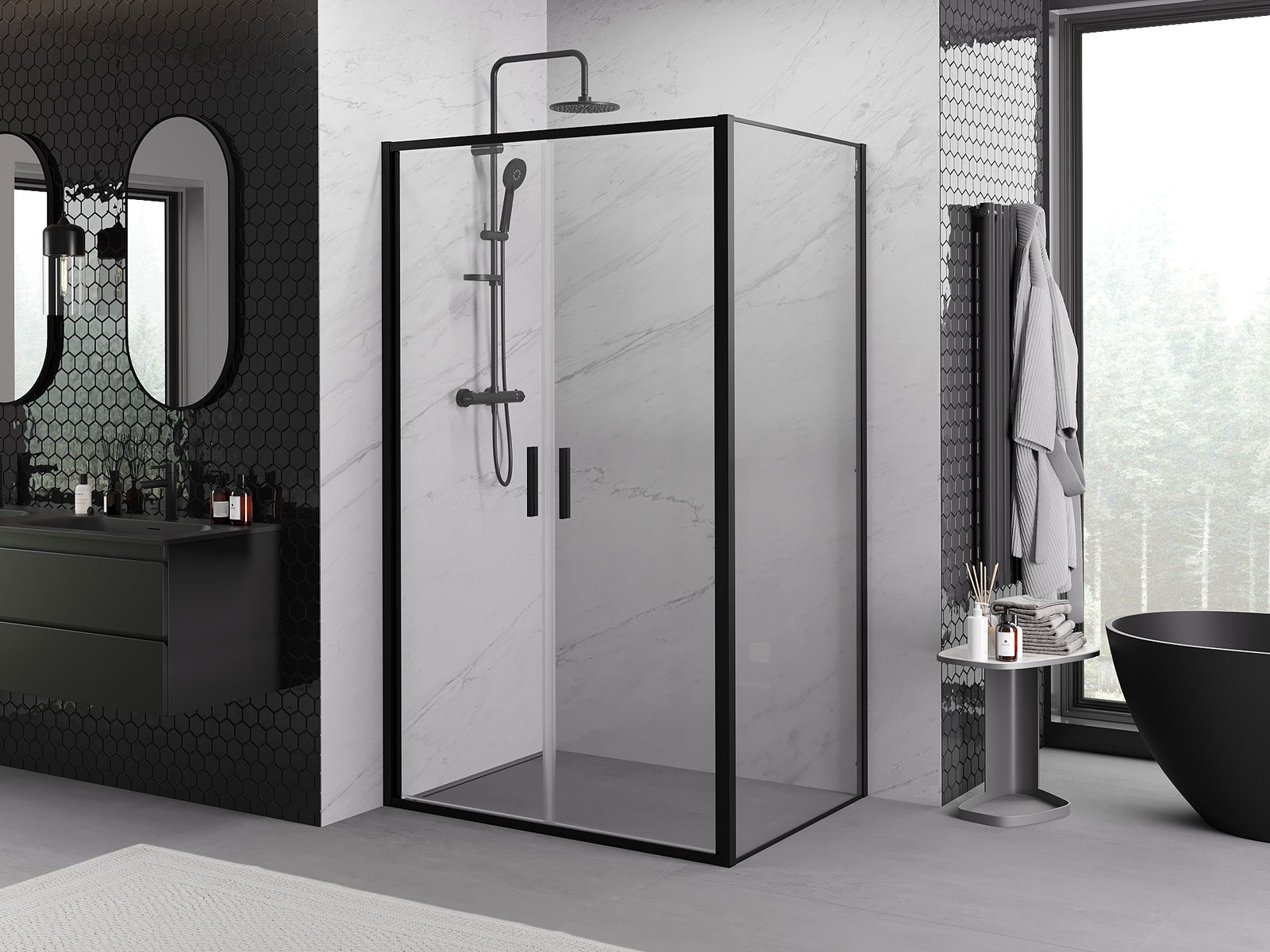Mexen Rio dušas kabīne kvadrātveida 90 x 90 cm, caurspīdīga, melna - 860-090-090-70-00