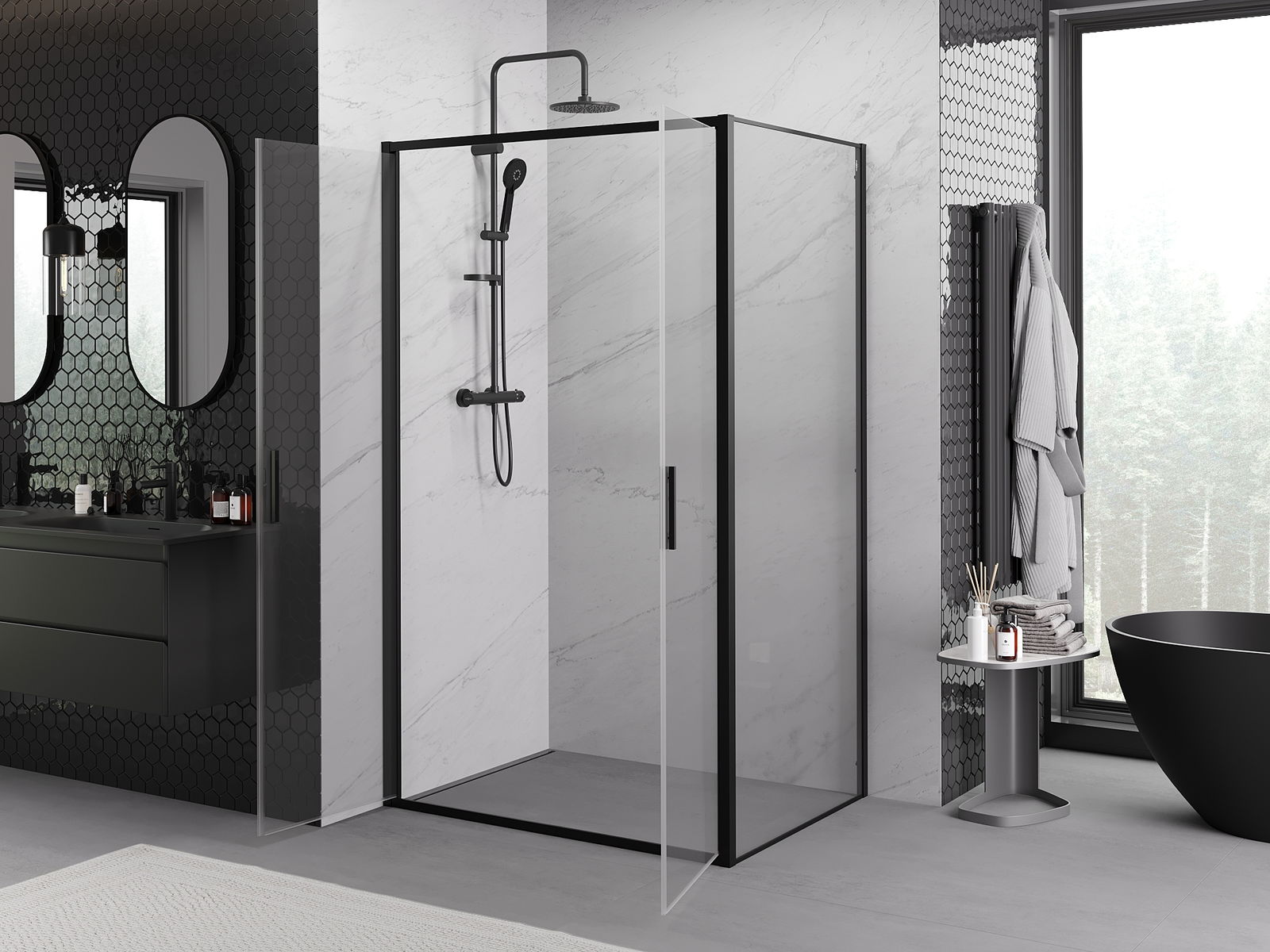 Mexen Exo atverama dušas kabīne 90 x 80 cm, caurspīdīga, melna - 814-090-080-70-00