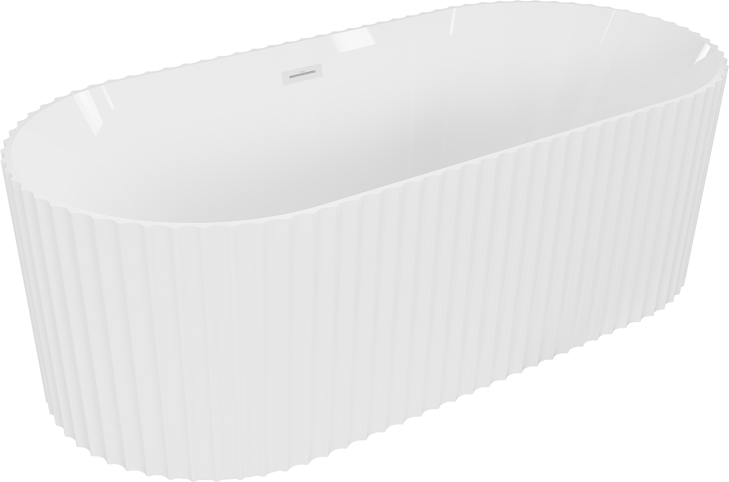 Mexen Paola brīvi stāvoša rievota vanna 150 x 75 cm, balts spīdums, balts pārplūdes - 52721507500-20