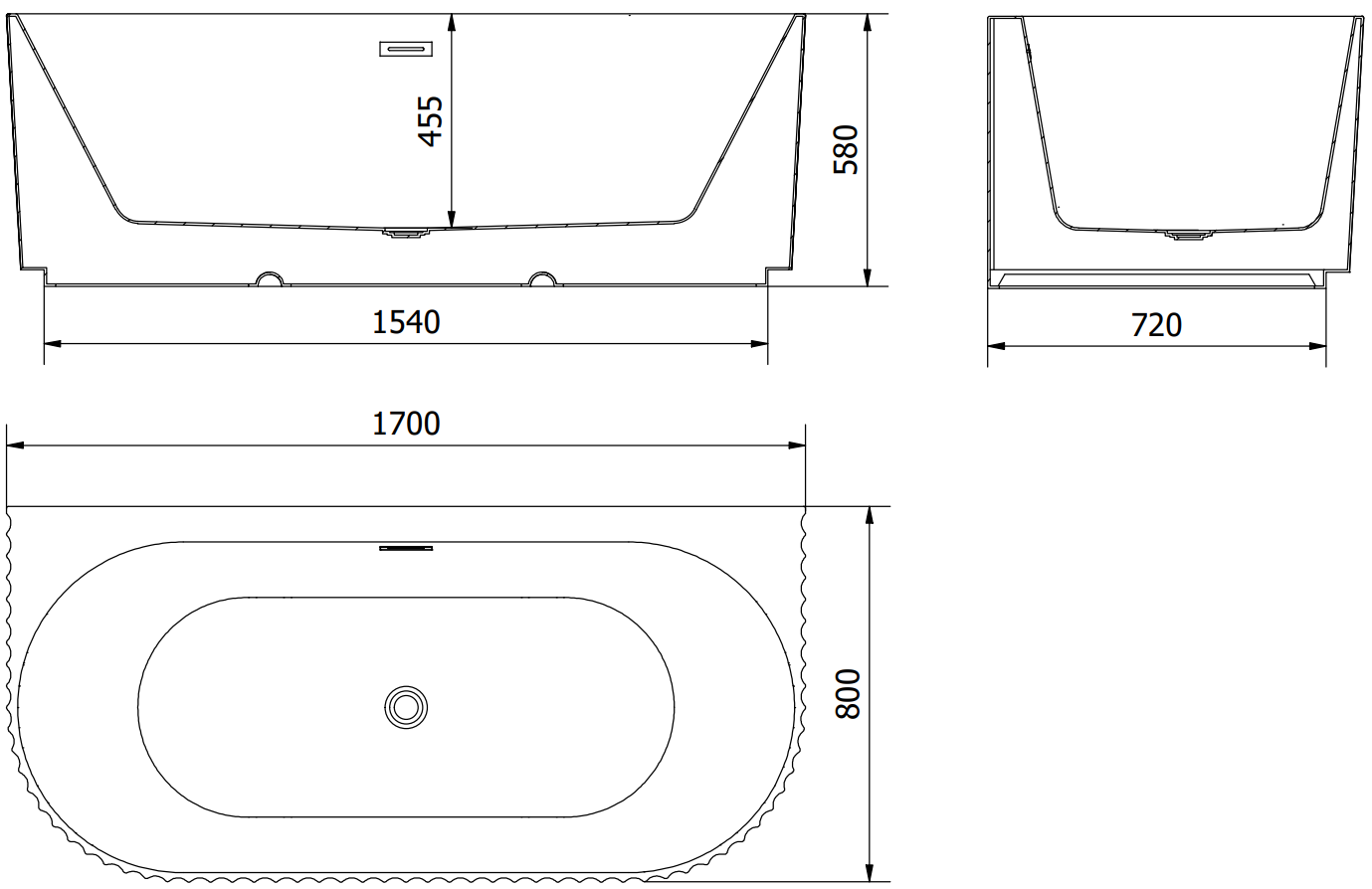 Mexen Sella brīvi stāvoša pie sienas rievota vanna 170 x 80 cm, balta matēta, pārplūdes matēts niķelis - 52711708001-97