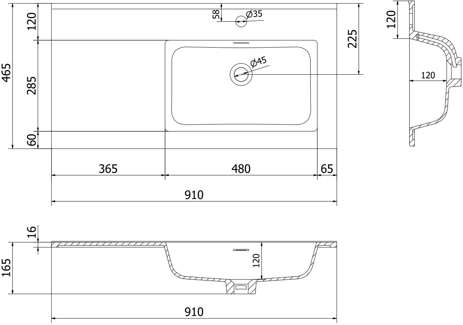 Tips: Iebūvējamā izlietne, Labā