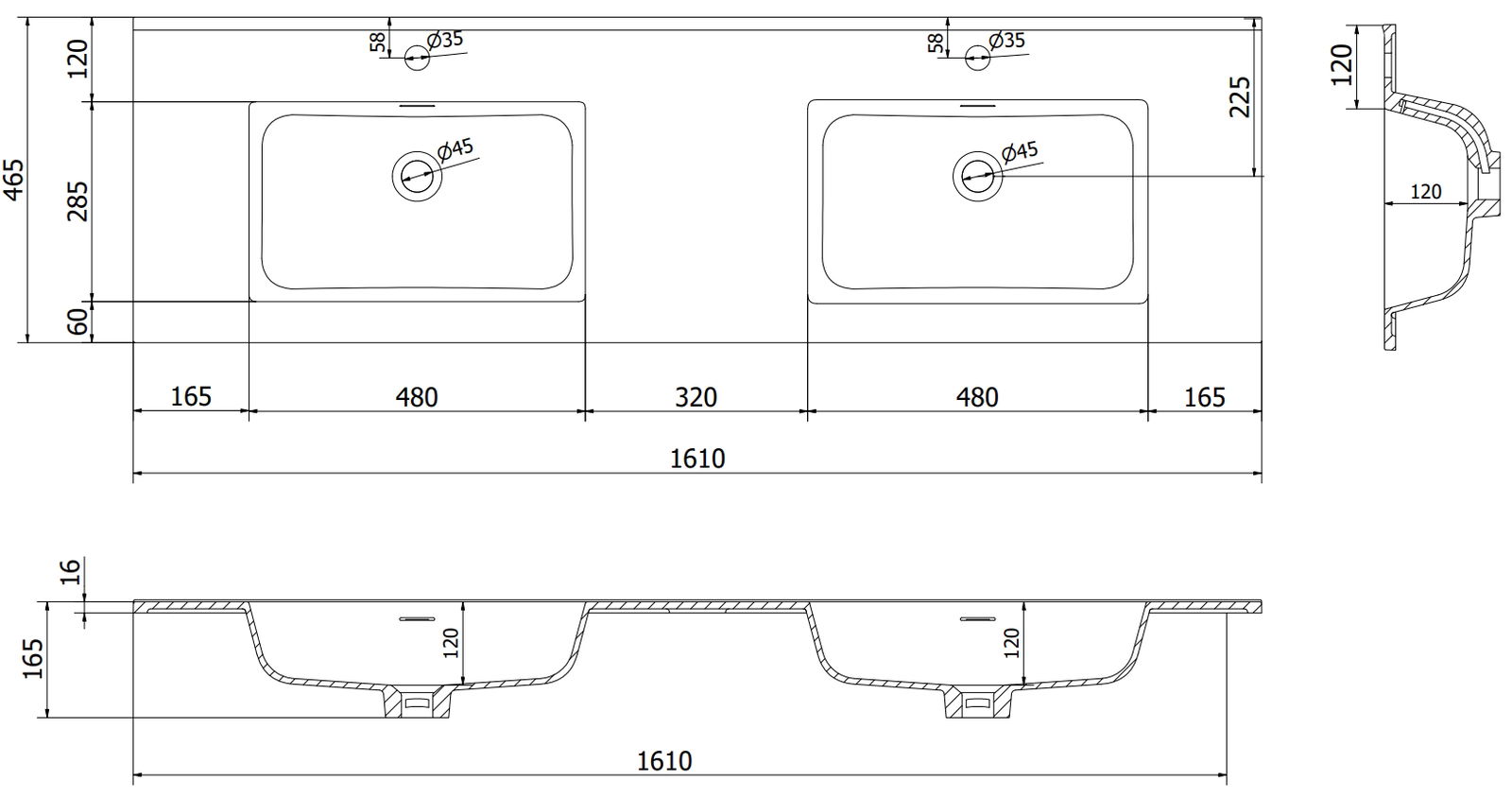 Pārplūdes atvere tiek saukta par "drošības atveri". Tā novada lieko ūdeni, tāpēc ūdens neizplūst pāri produkta malai, kad apakšējā noteka ir aizvērta. Tas ir ļoti drošs un praktisks risinājums.