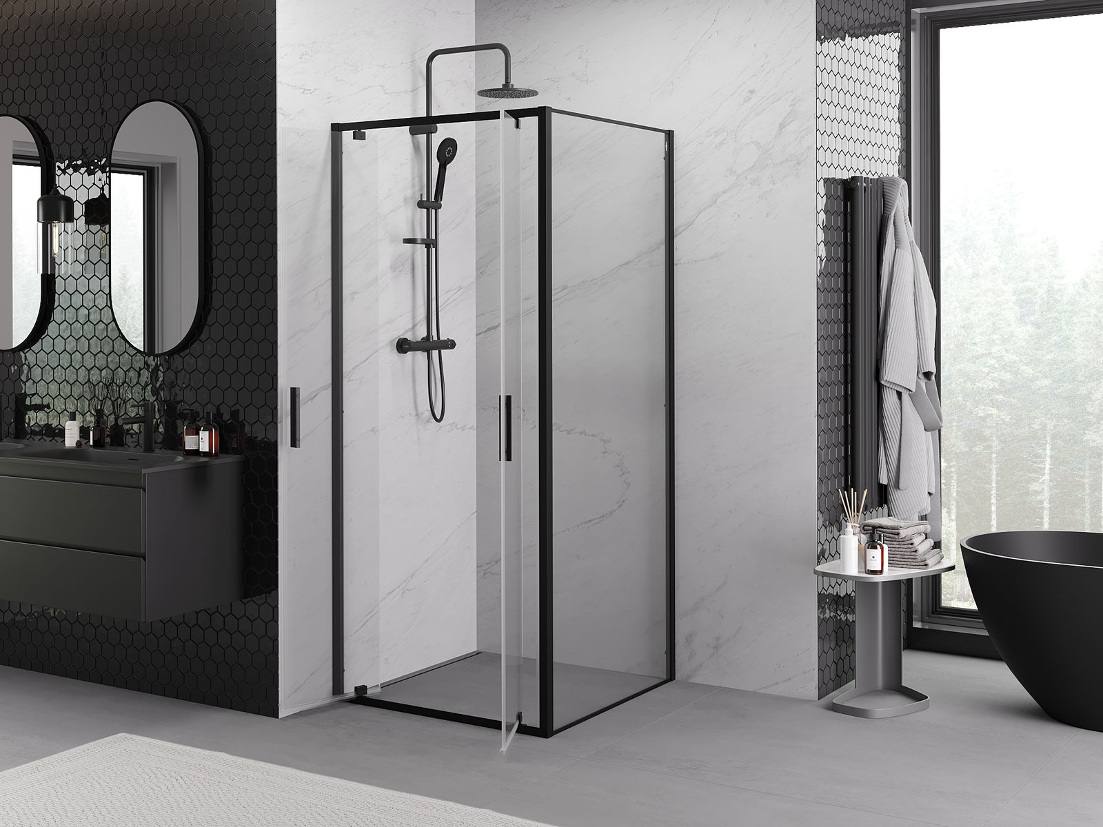 Mexen Exo 90 x 90 cm eņģu dušas kabīne, caurspīdīga, melna - 8182-090-090-70-00